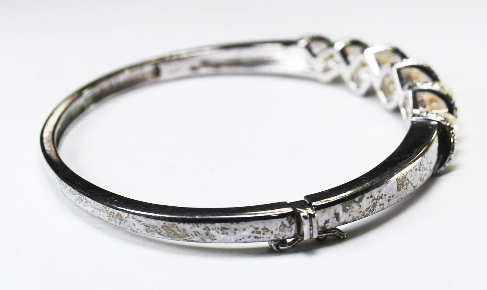 Sterling Silver Pearl CZ Hinged Bangle 9mm Bracelet