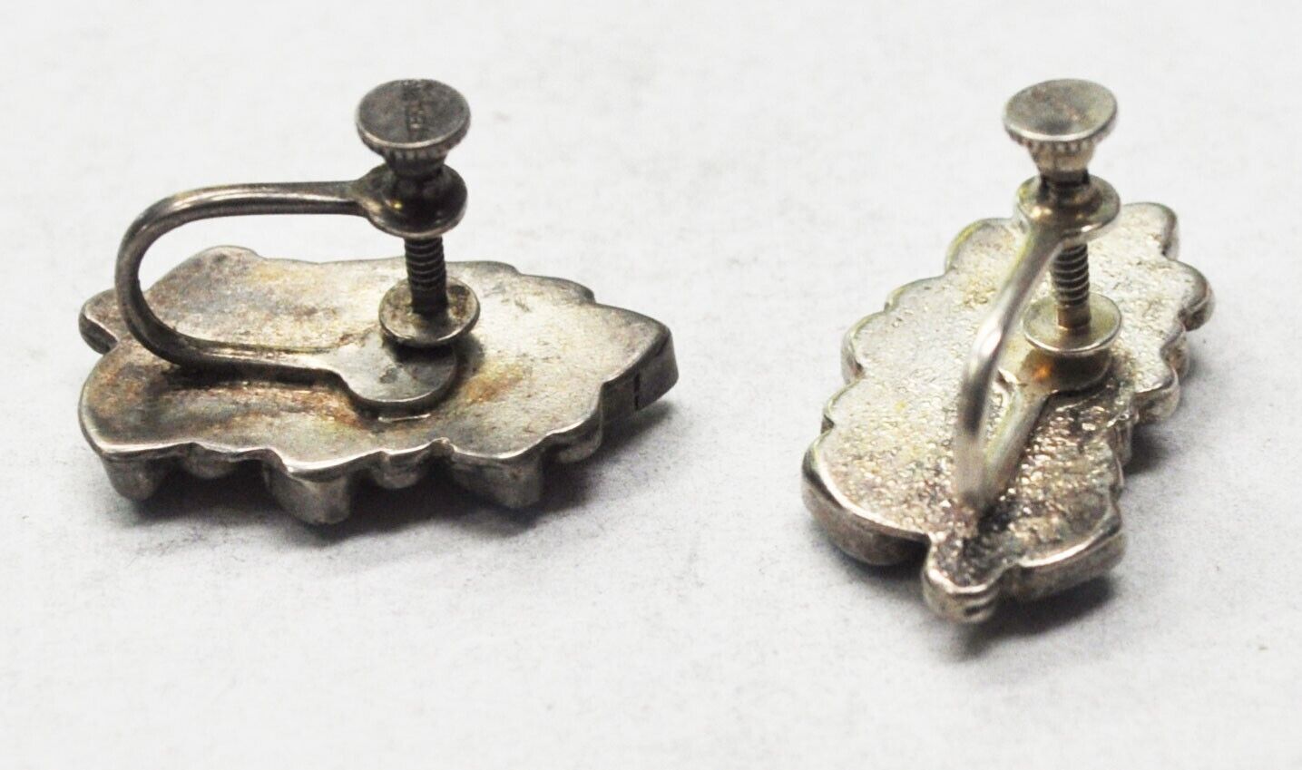 Sterling Silver Petit Point Leaf Cluster Earrings 21mm x 12mm Clip On Earrings