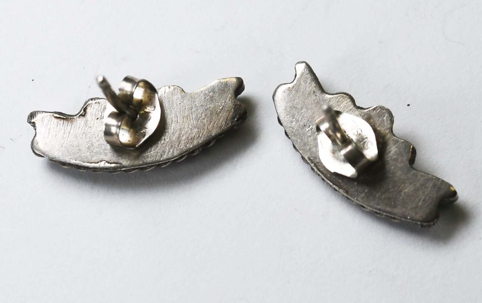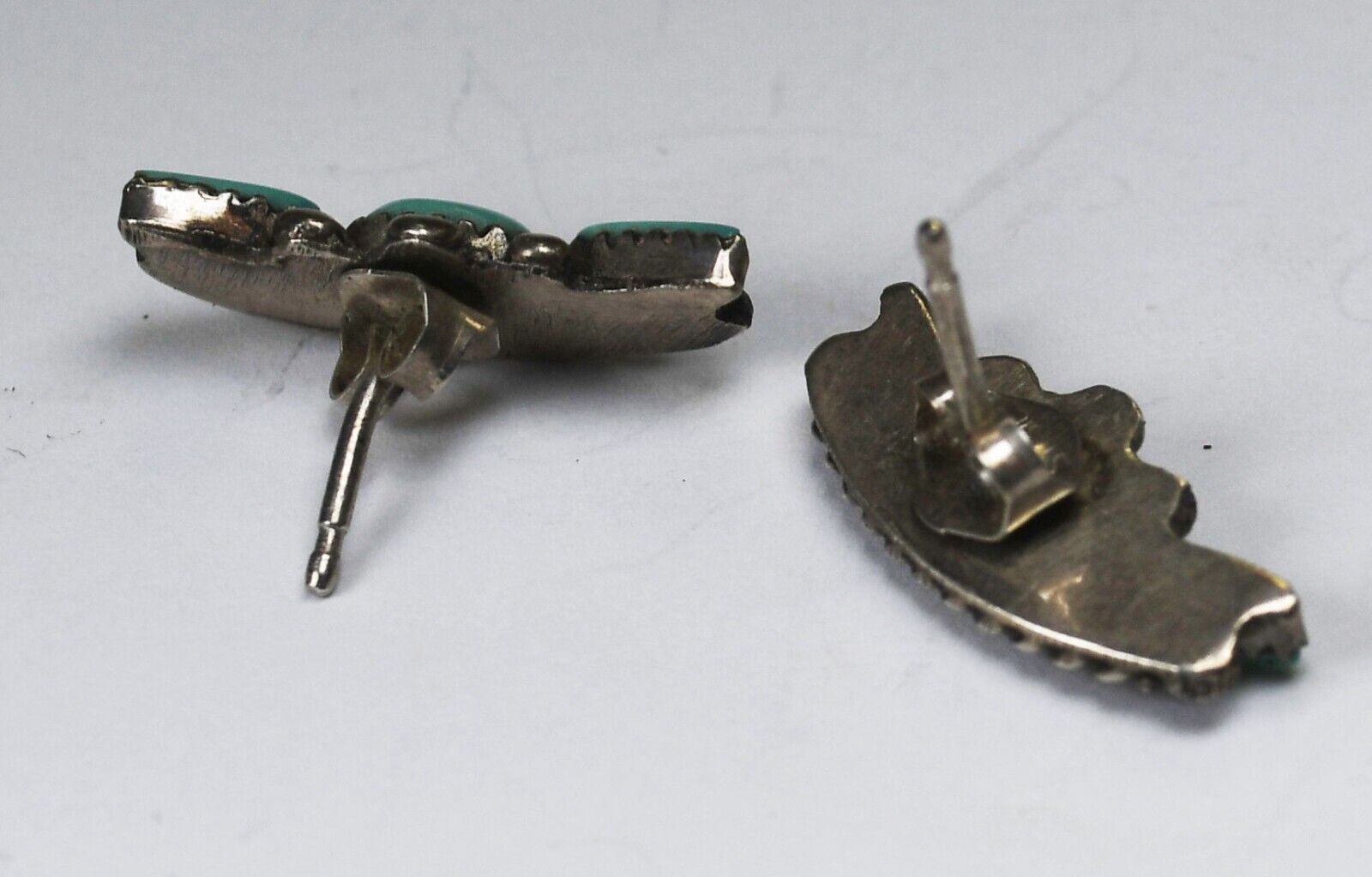 Sterling Silver Petit Point Turquoise Crescent Earrings 18mm x 8mm