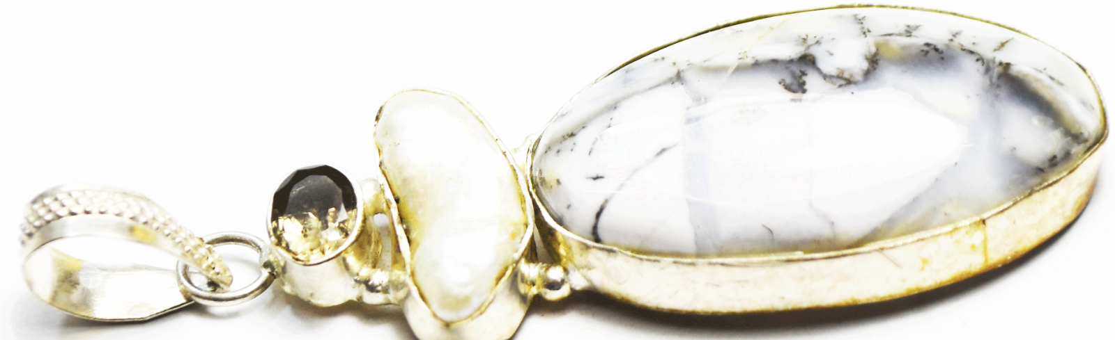 Sterling Silver Picasso Stone Pearl Smoky Quartz Pendant 76mm x 21mm