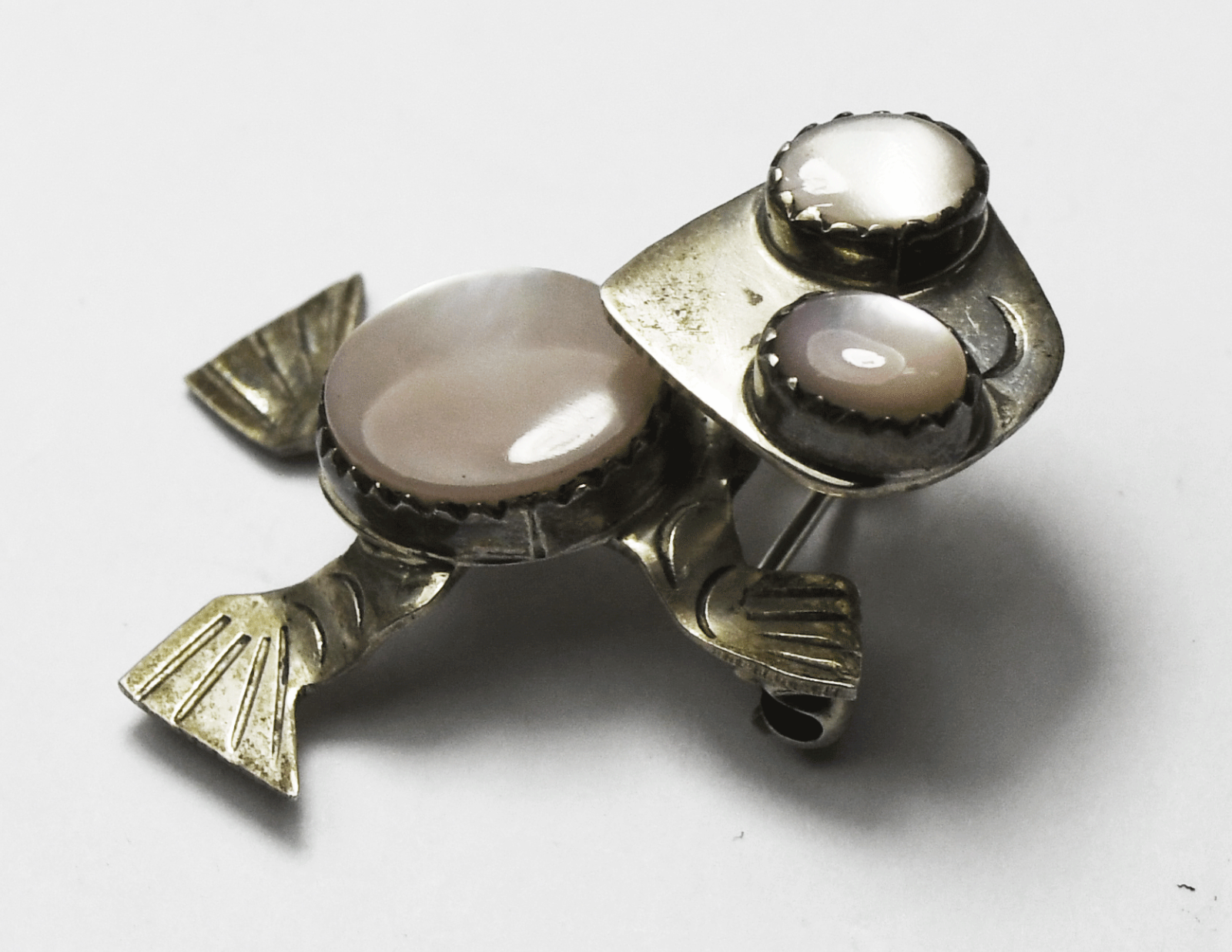 Sterling Silver Pink MOP Frog Brooch Pin Pendant 37mm x 23mm x 18mm
