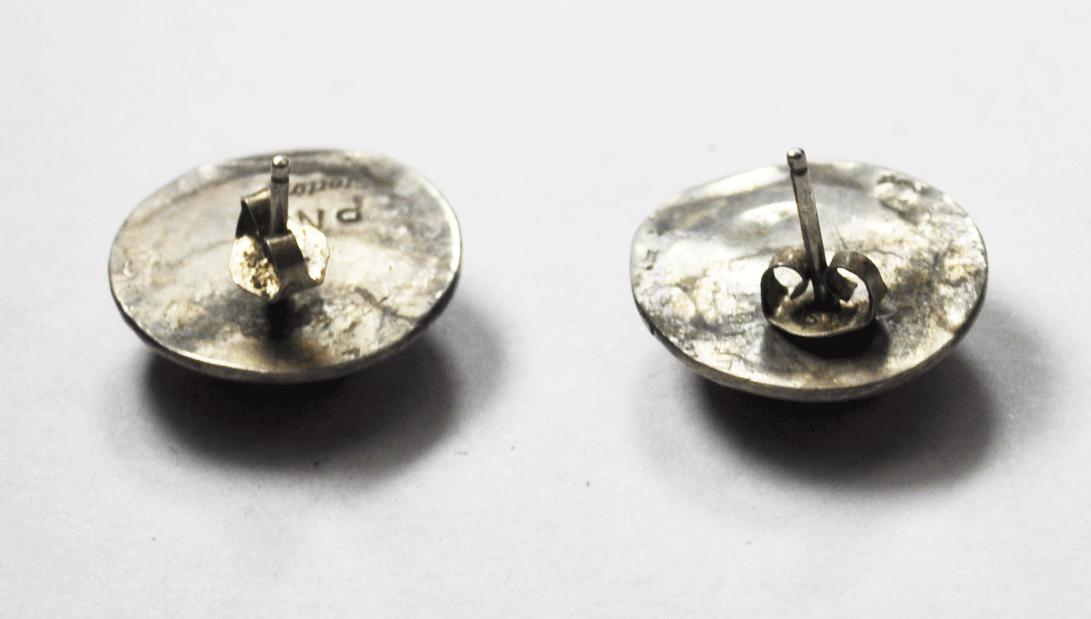 Sterling Silver Pink MOP Signed PN Oval Earrings 19mm x 18mm