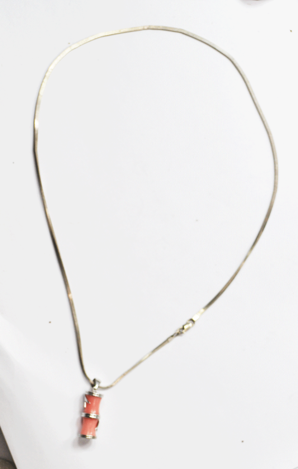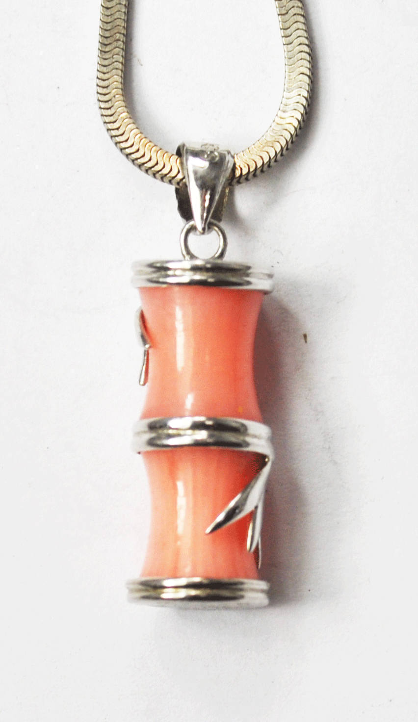 Sterling Silver Pink MOP Tube Floral Leaf Pendant 1-1/8" x 9mm 18" Necklace 2mm