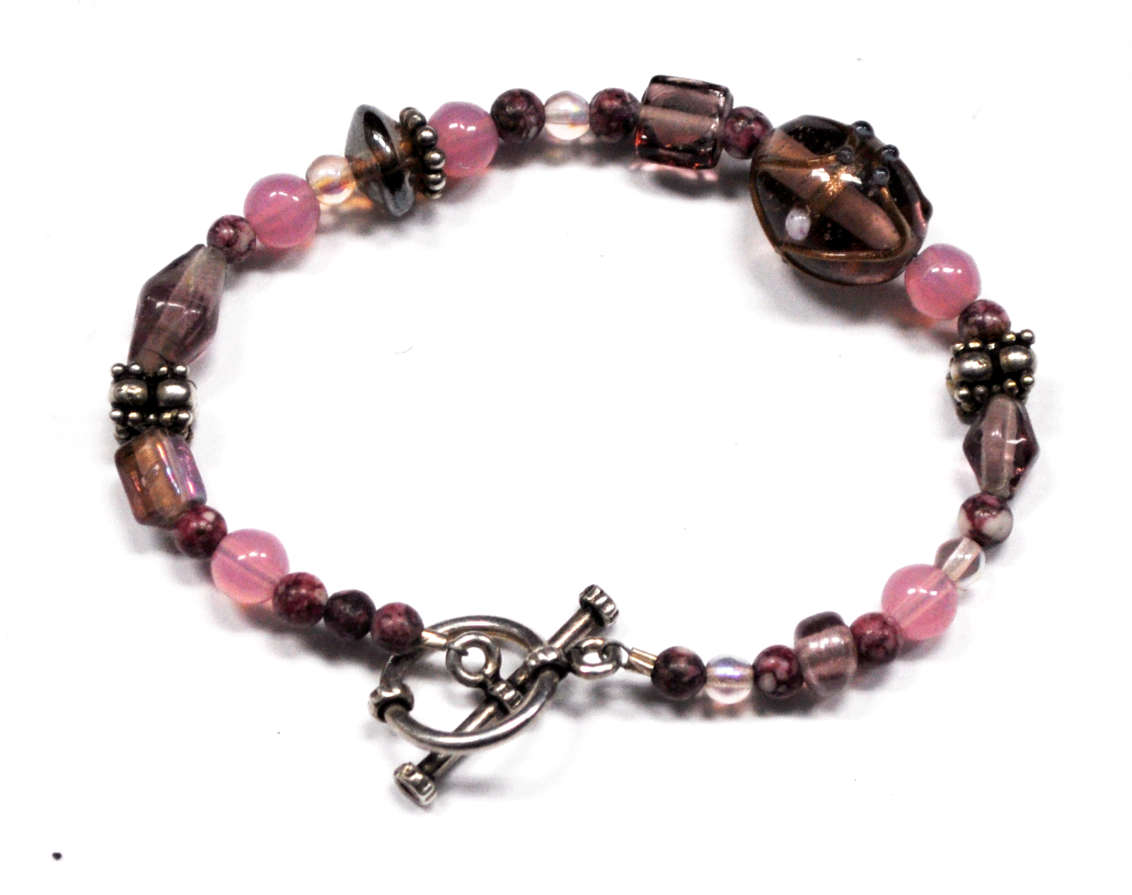 Sterling Silver Pink Purple Glass Bead Swirl 12mm 7.25" Wire Toggle Bracelet