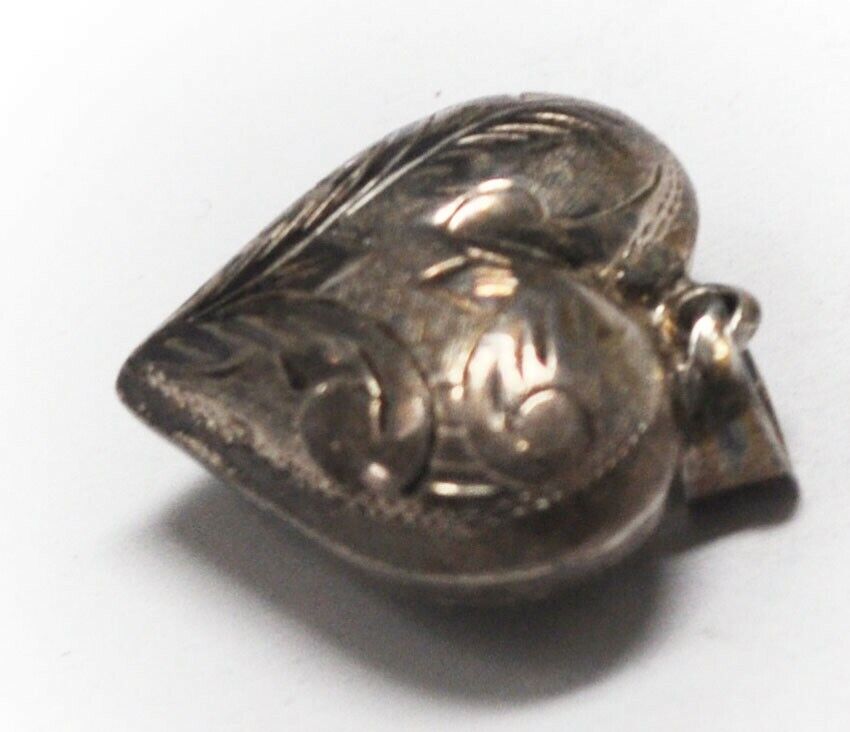 Sterling Silver Puffy Heart Etched Scroll Floral Pendant 30mm x 23mm