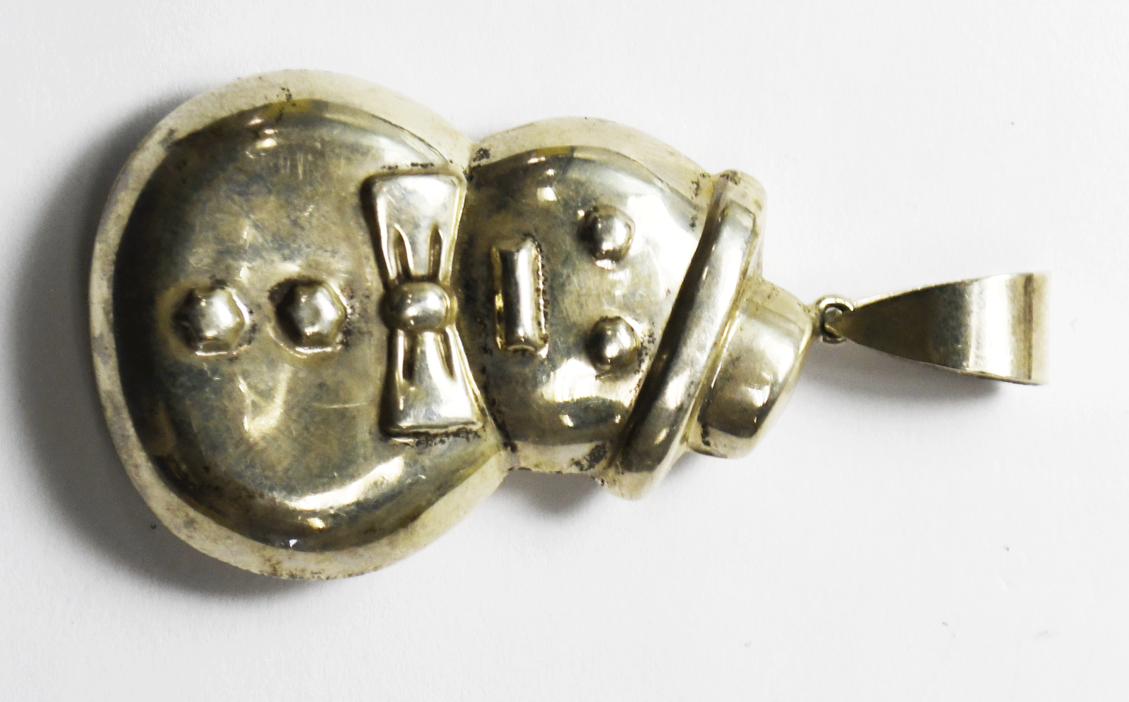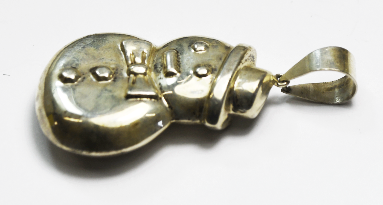 Sterling Silver Puffy Snowman Christmas X-Mas Pendant 60mm x 31mm