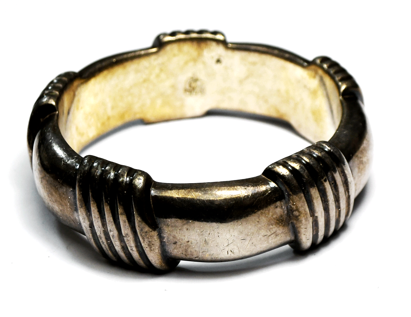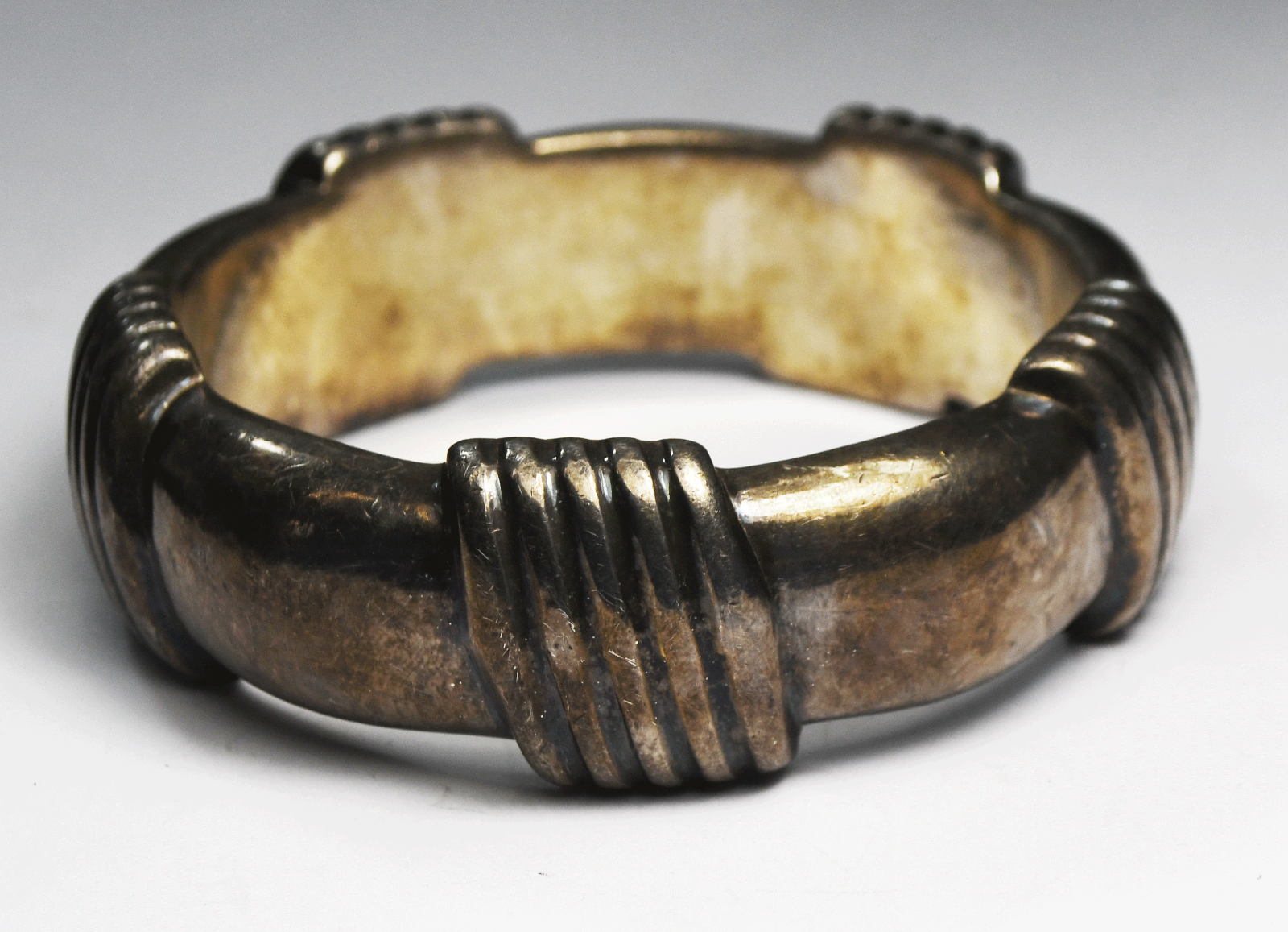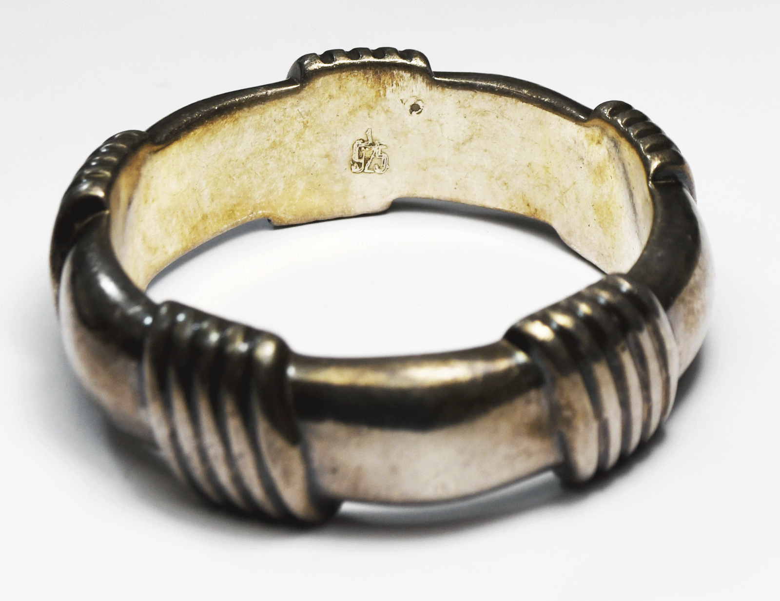 Sterling Silver Puffy Stripe Hollow Medium Round Bangle 25mm 54g