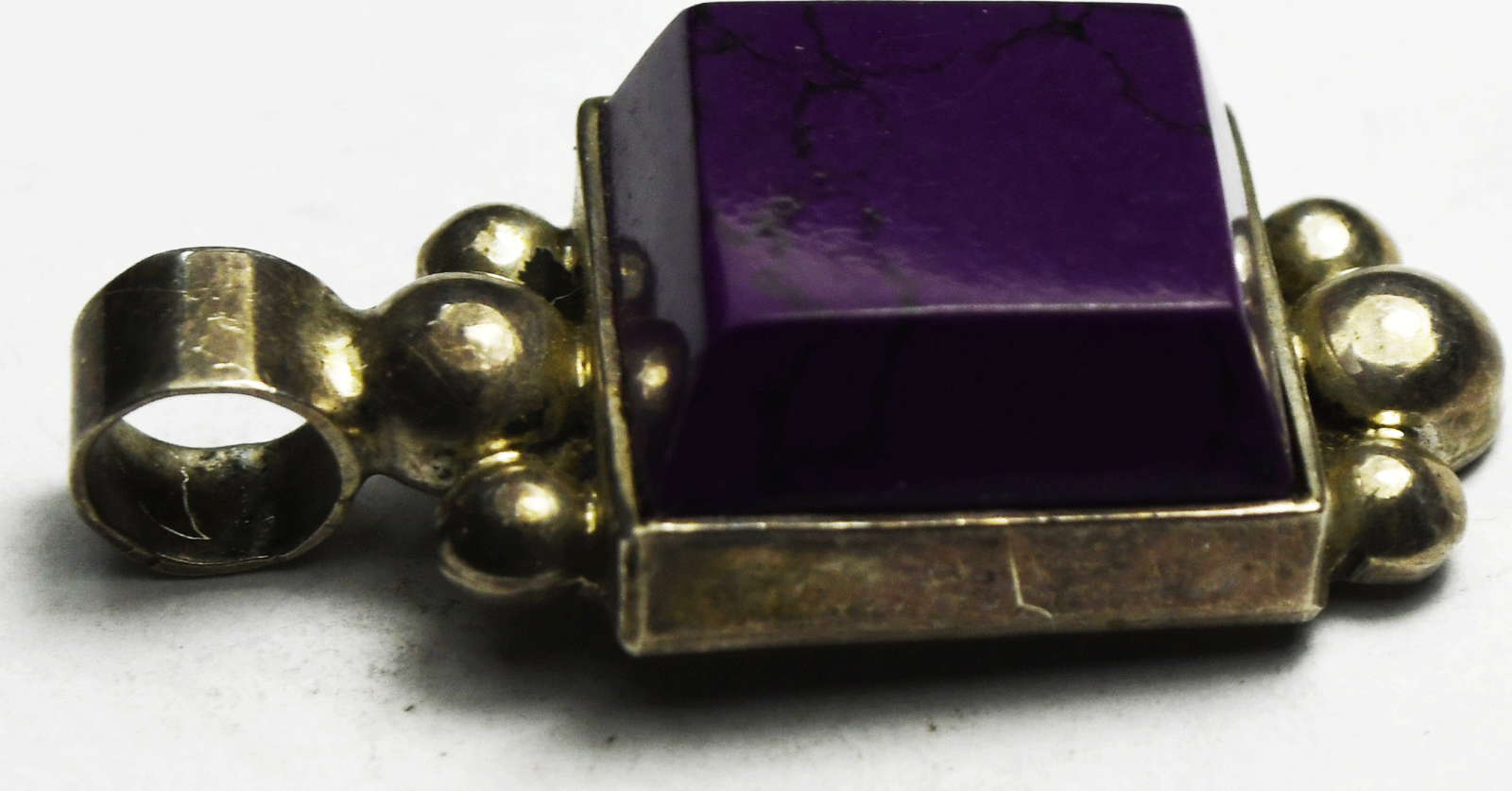 Sterling Silver Purple Turquoise Dot Pendant 35mm x 17mm