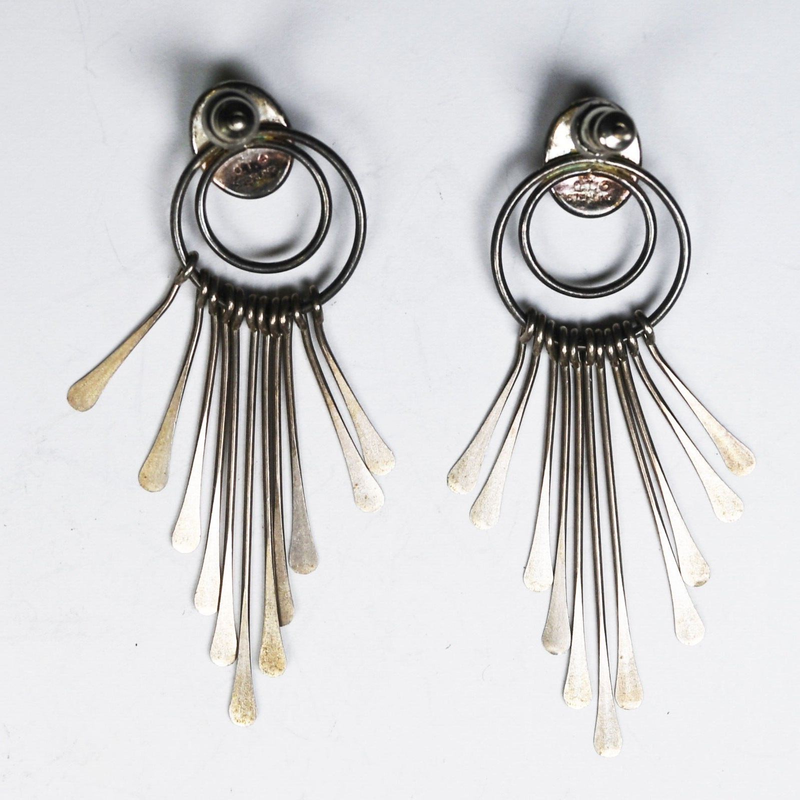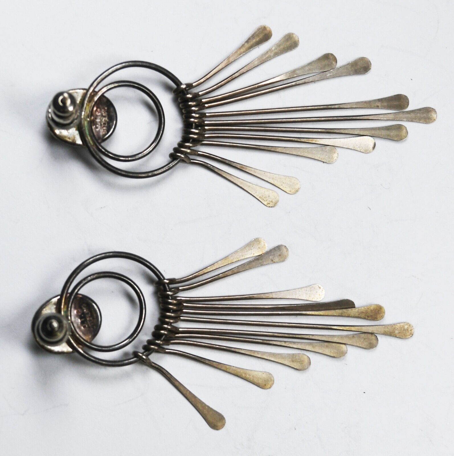 Sterling Silver Quoc QT Oval Turquoise Chandelier Dangle Earrings 58mm x 17mm