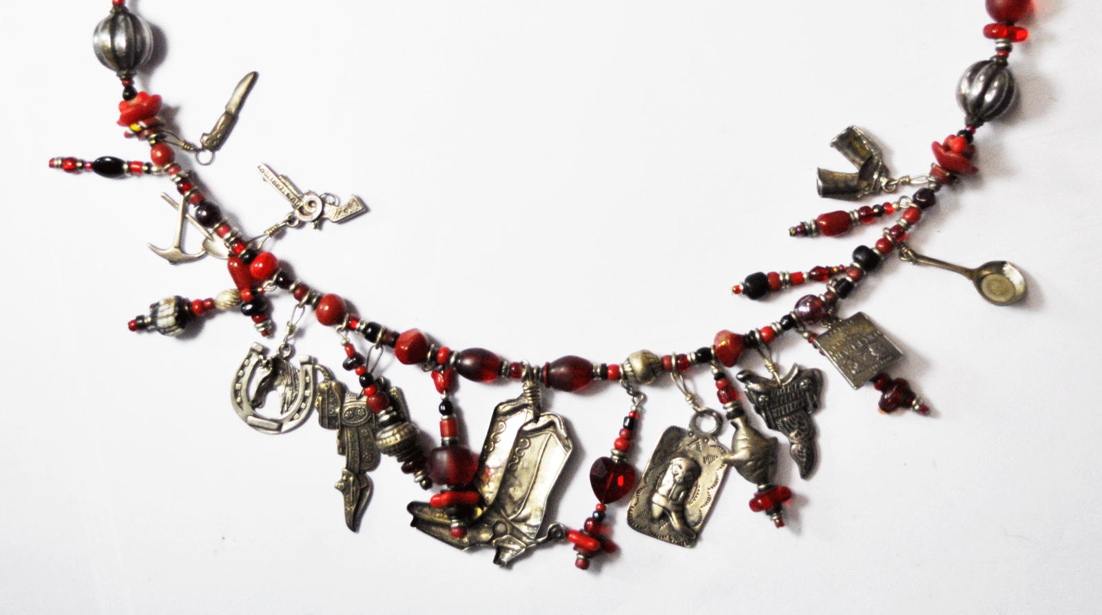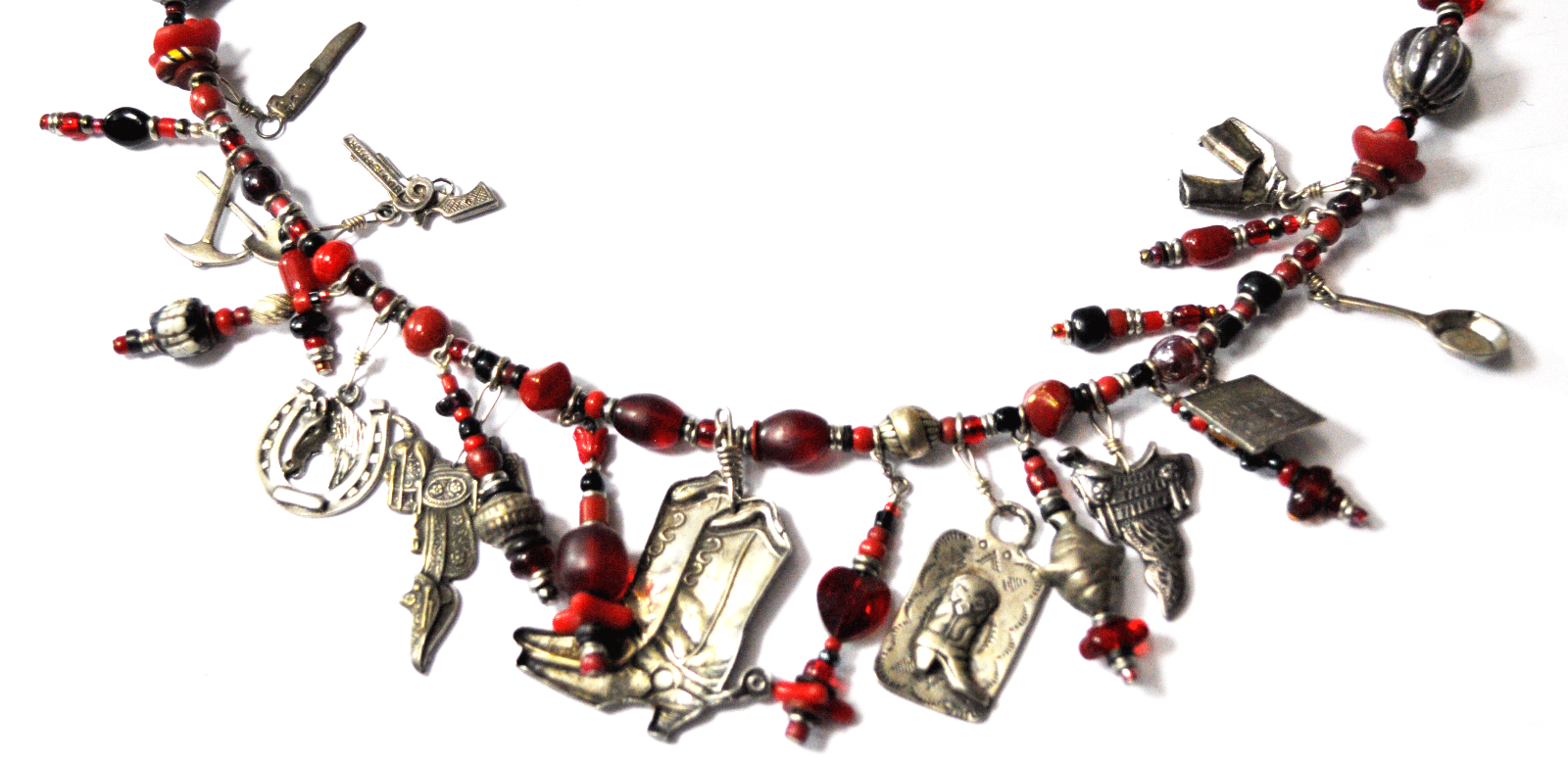 Sterling Silver Red Bead Southwest 2" Charm Necklace 23.5" Boots Pistol Saddle