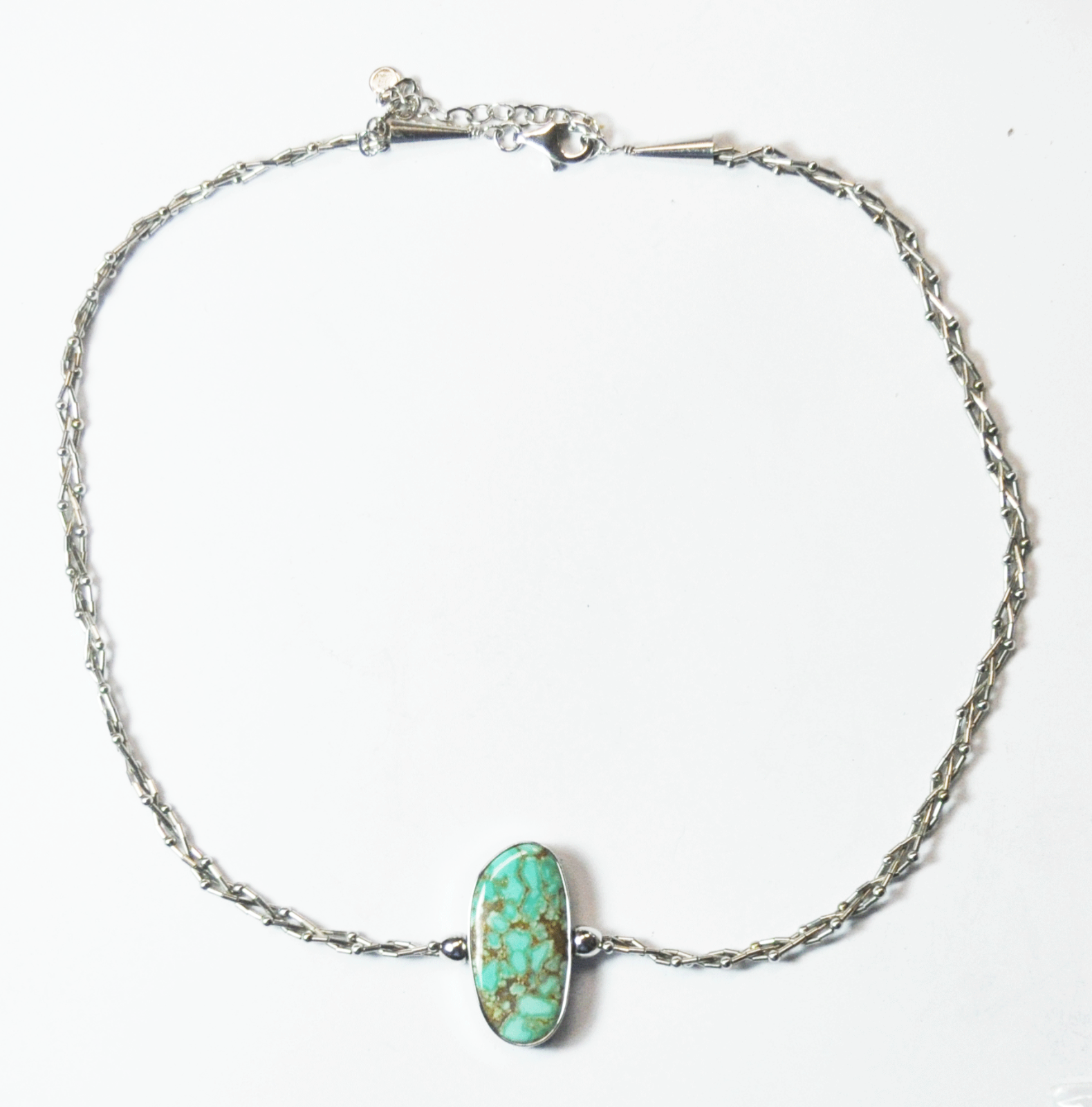 Sterling Silver Reversible Light & Dark Blue Turquoise 32mm Pendant 21" Necklace