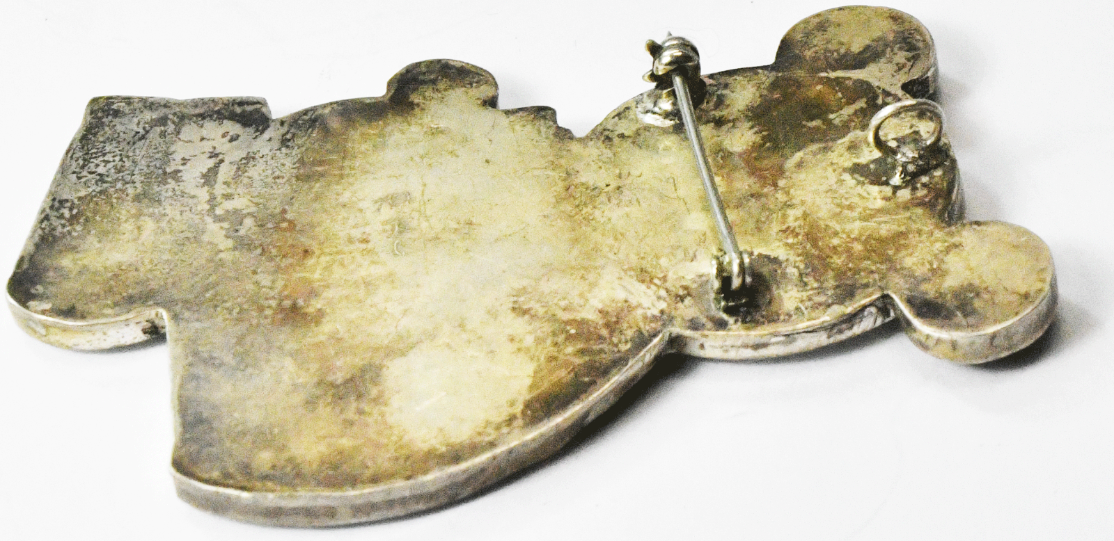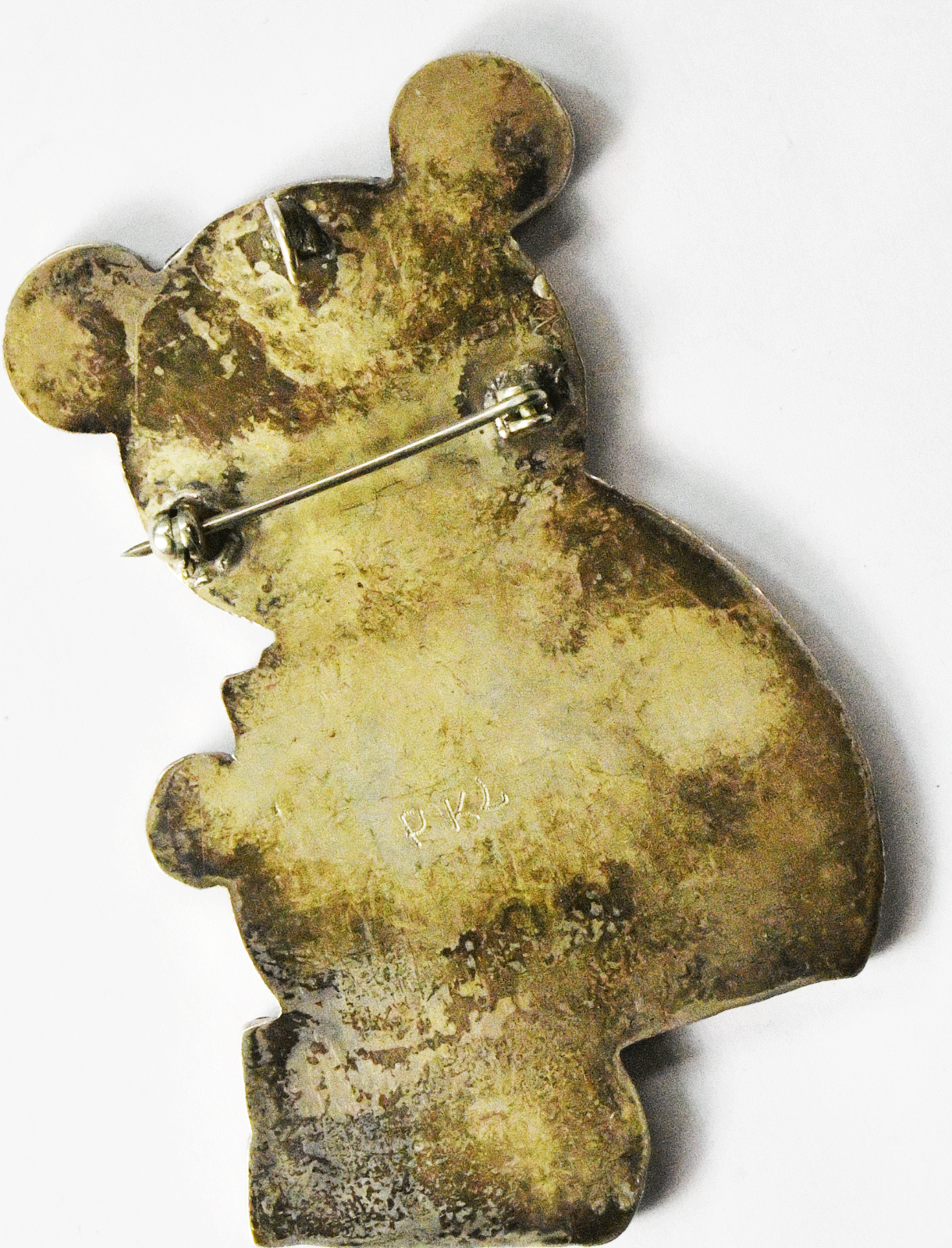 Sterling Silver RKL Panda & Cub Onyx Turquoise MOP Inlay Pendant Brooch 73x46mm