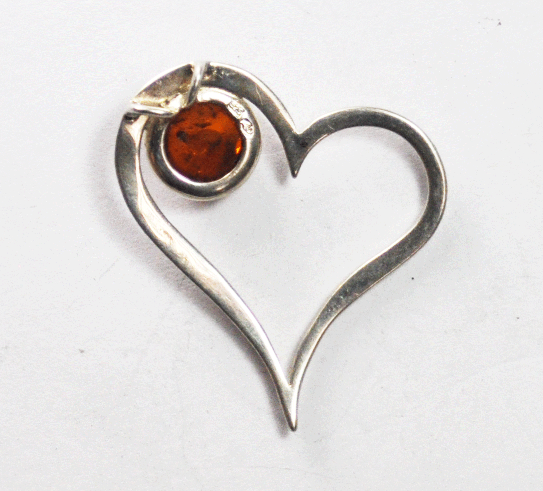 Sterling Silver Round Amber Wire Heart Halo 37mm x 34mm Pendant 3mm Bale Slide