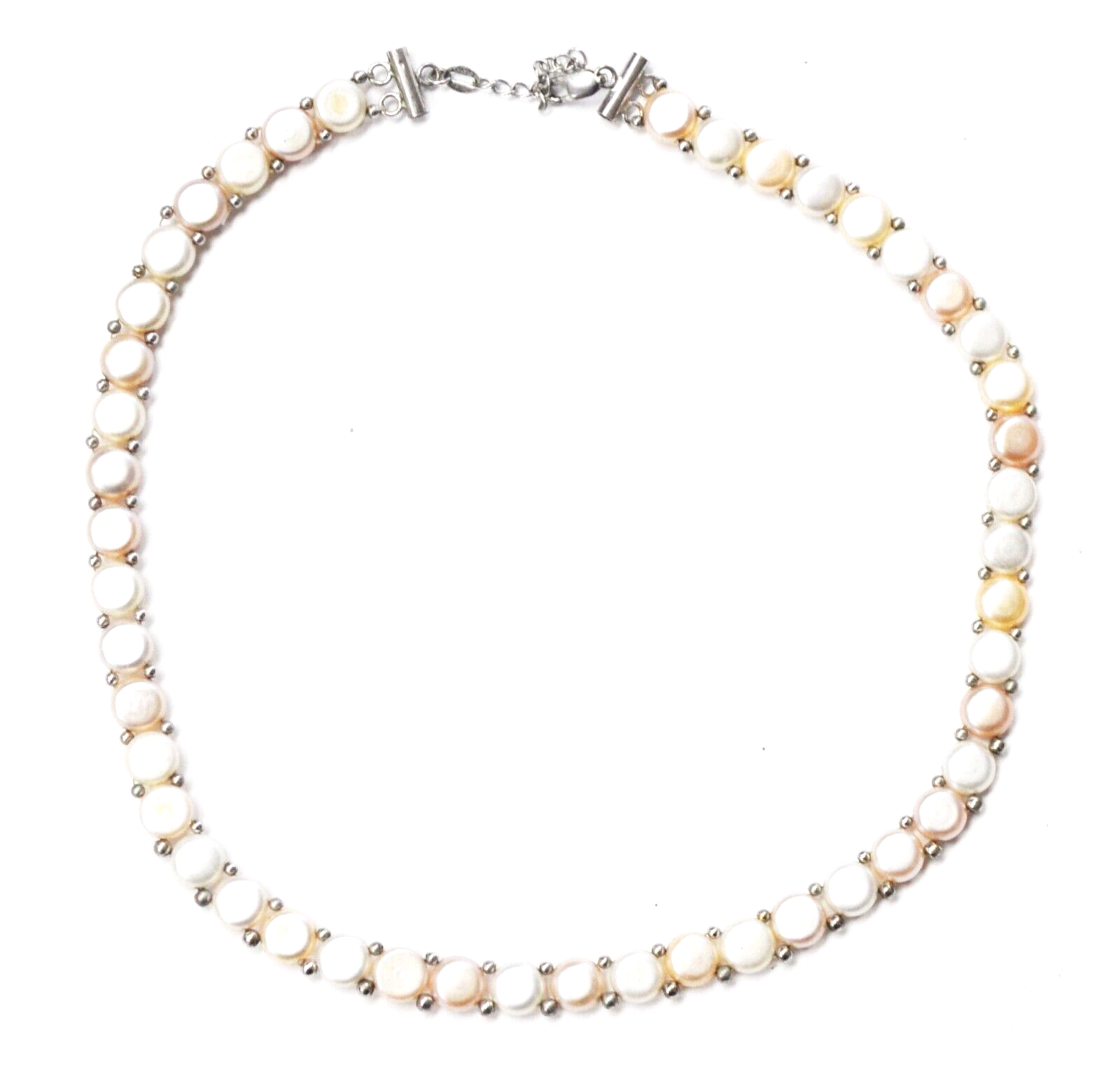 Sterling Silver Round Disc Pearl Multi Color Necklace 8mm 18"
