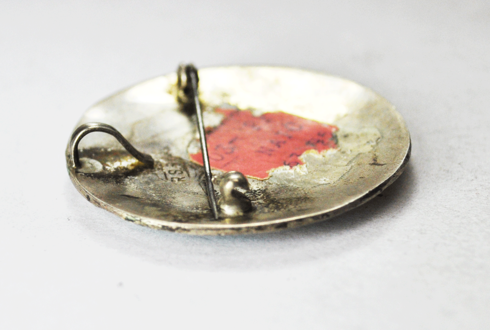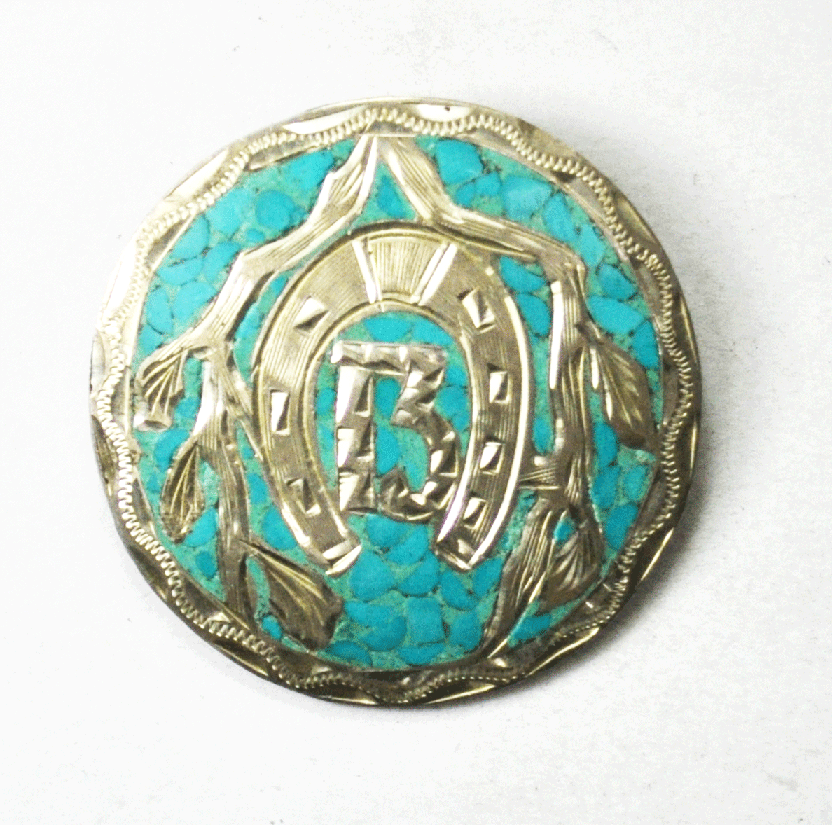 Sterling Silver RSS Mexico Turquoise Chip Horseshoe B Round Brooch Pin 42mm
