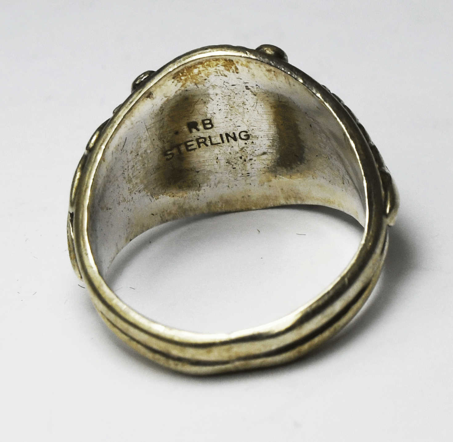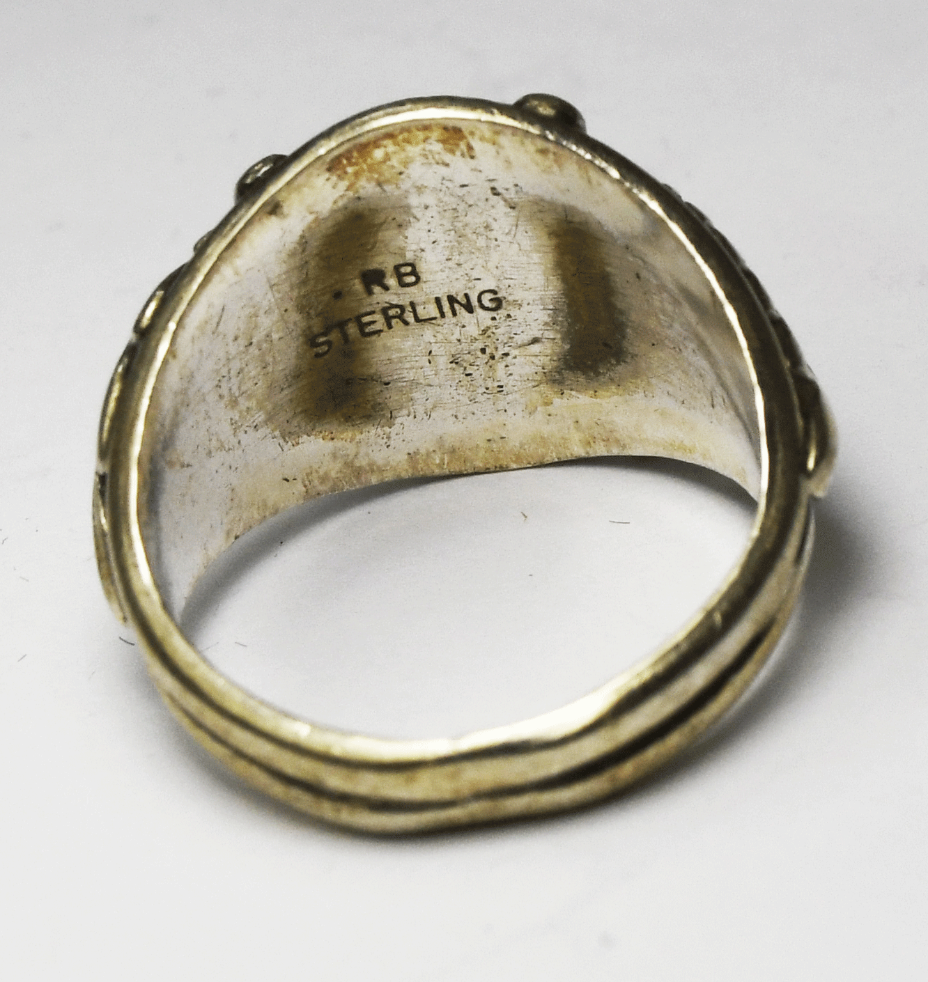 Sterling Silver Running Bear Oval Turquoise Feather Edge Ring 17mm Size 9