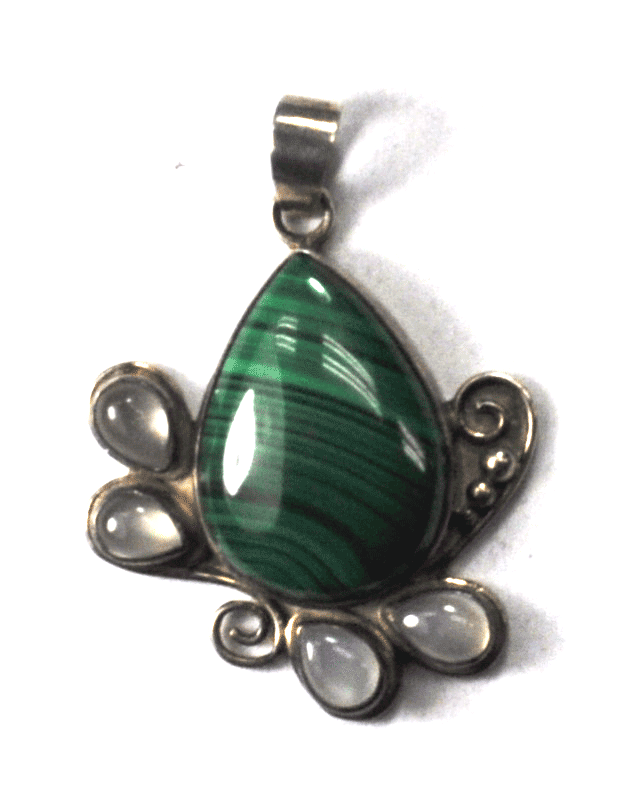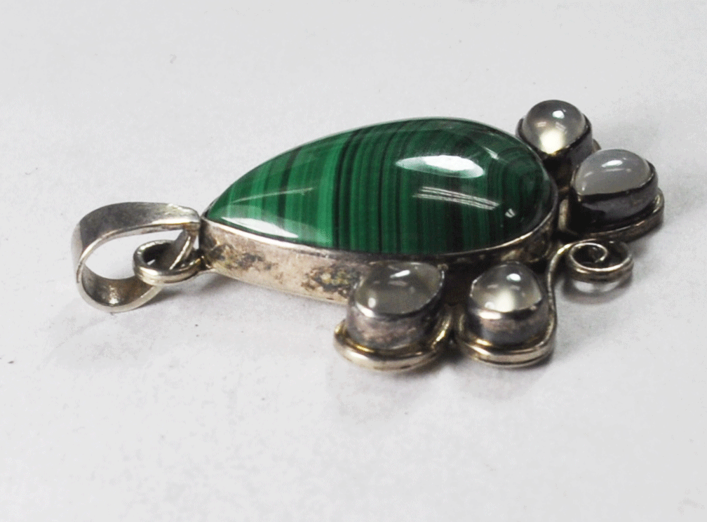 Sterling Silver Sajen Green Malachite Moonstone Pendant Teardrop 1-1/4" x 1-3/4"