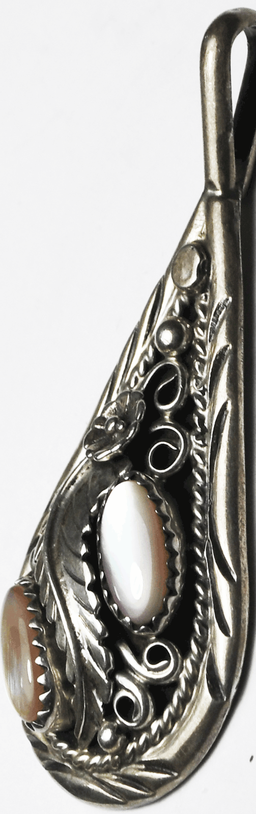 Sterling Silver SC Pink MOP Teardrop Floral Pendant 52mm x 23mm