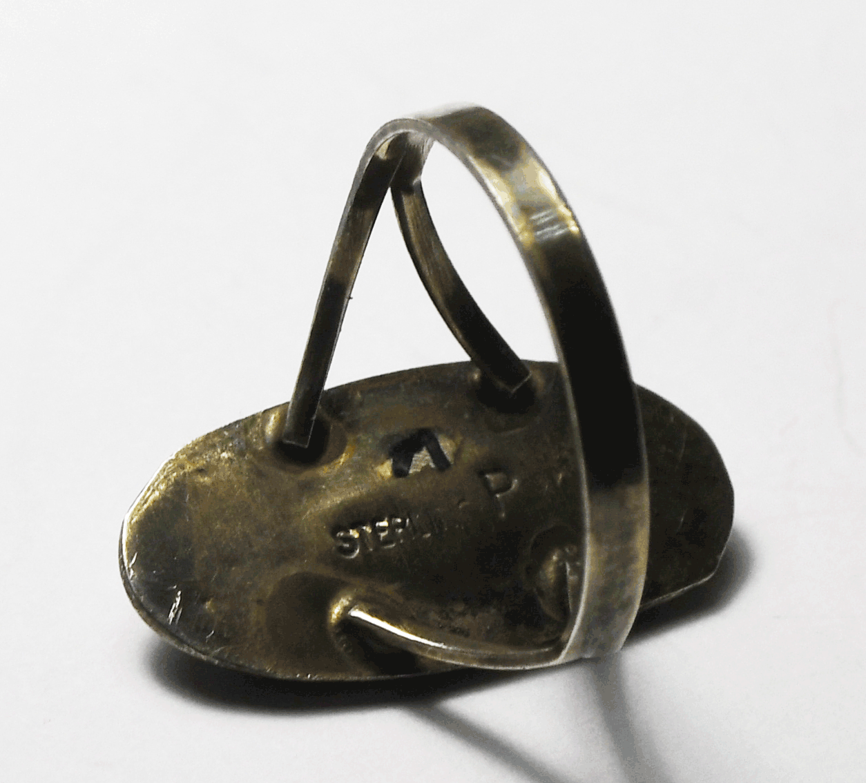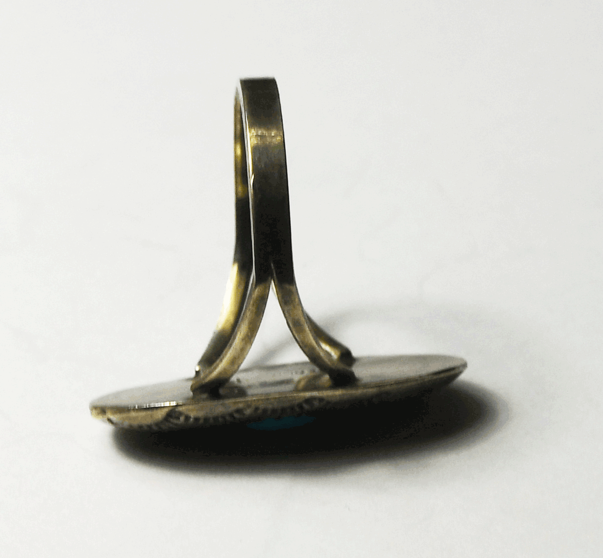 Sterling Silver Signed P Turquoise Shadow Box Ring 22mm Size 7