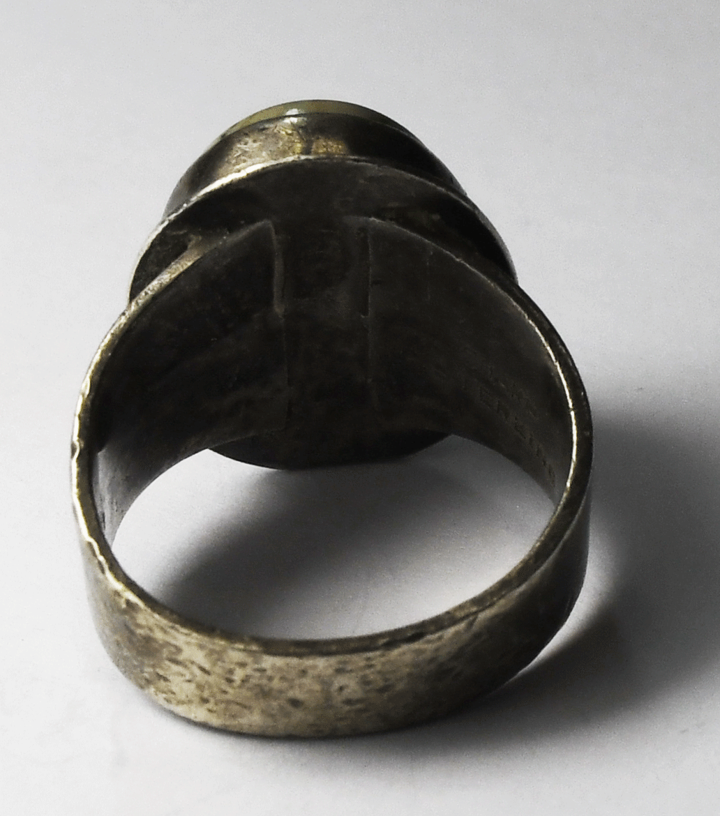 Sterling Silver Signed Sharp Jasper Oval Ring 20mm Band Size 6-1/2