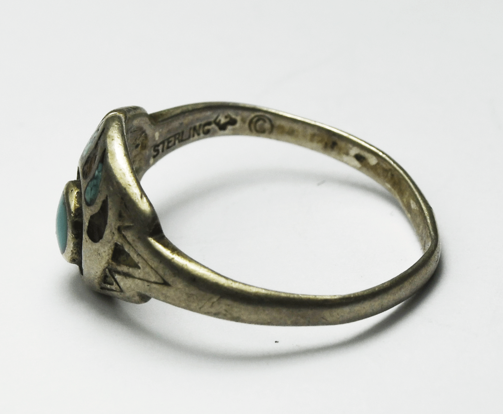 Sterling Silver Signed Turquoise & Coral Chip Inlay Bear Claw 11mm Ring Size 9