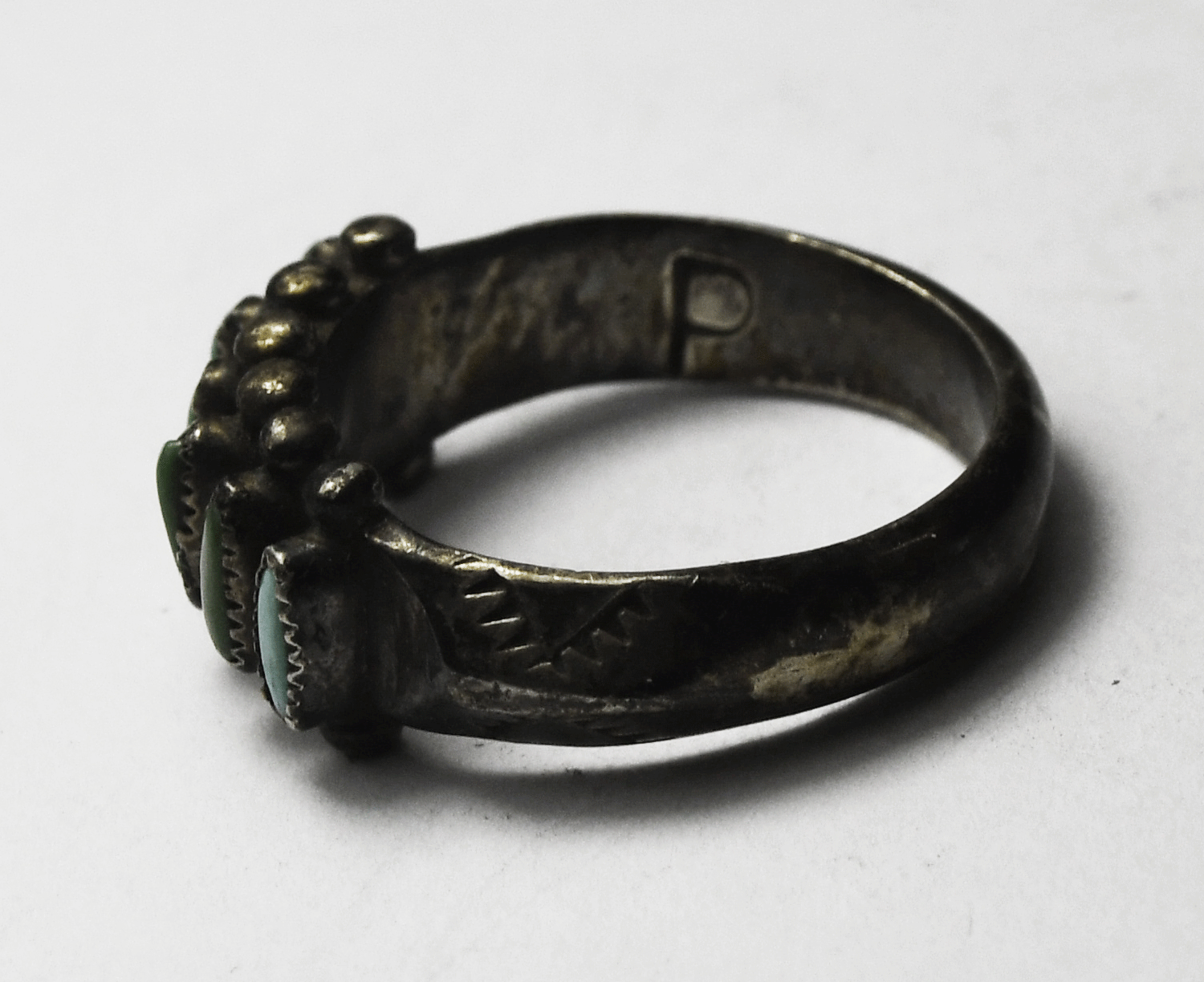 Sterling Silver Six Turquoise Petit Point Rice Micro Inlay Ring 8mm Size 7.5