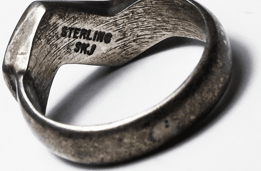Sterling Silver SKJ Kallestewa Turquoise Inlay Zigzag Ring 7mm Size 5-1/2