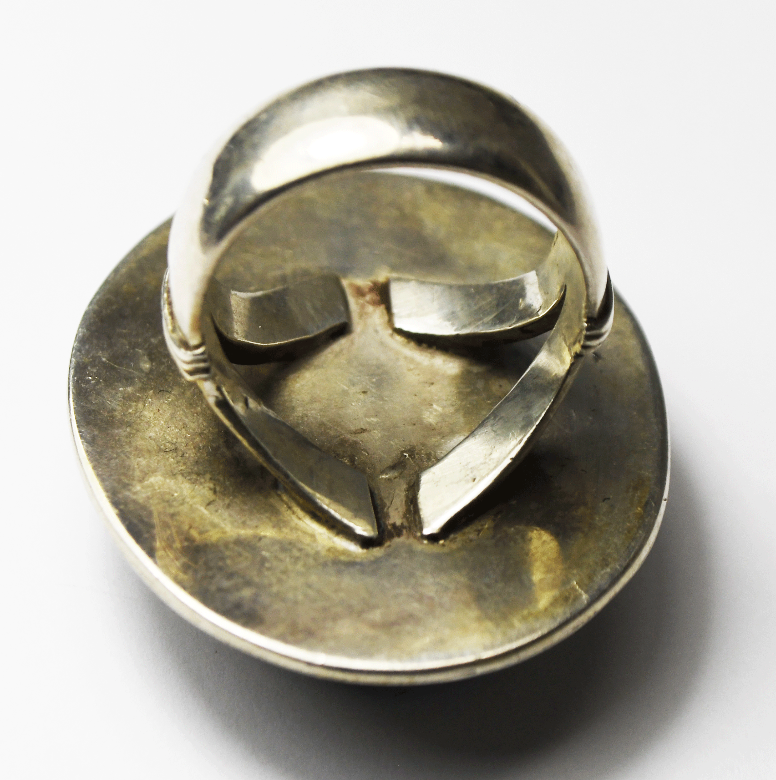 Sterling Silver Spiderweb Turquoise Large Oval Ring 38mm Size 8-1/2