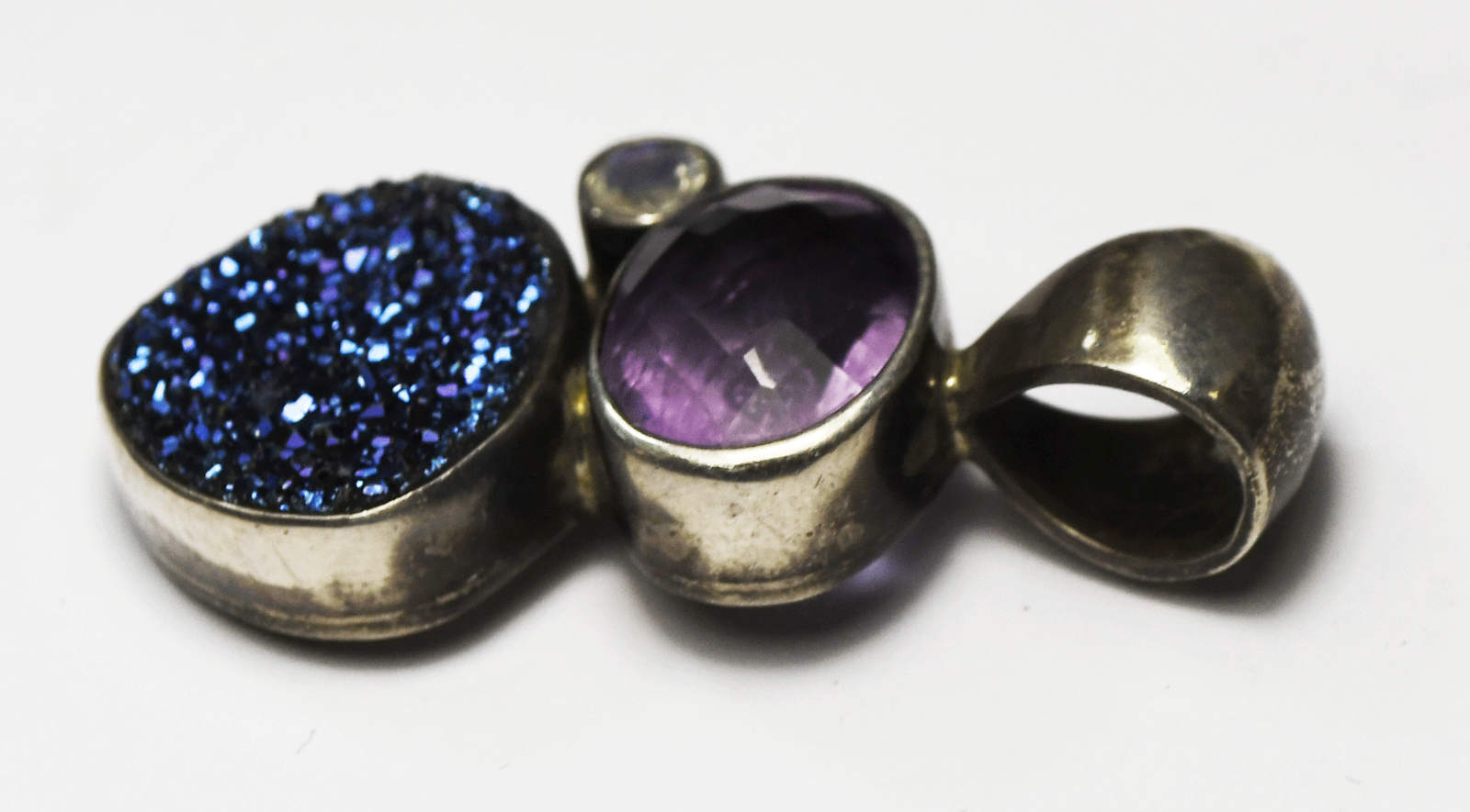 Sterling Silver Starborn Druzy Quartz Amethyst Pendant 1.5" x 20mm