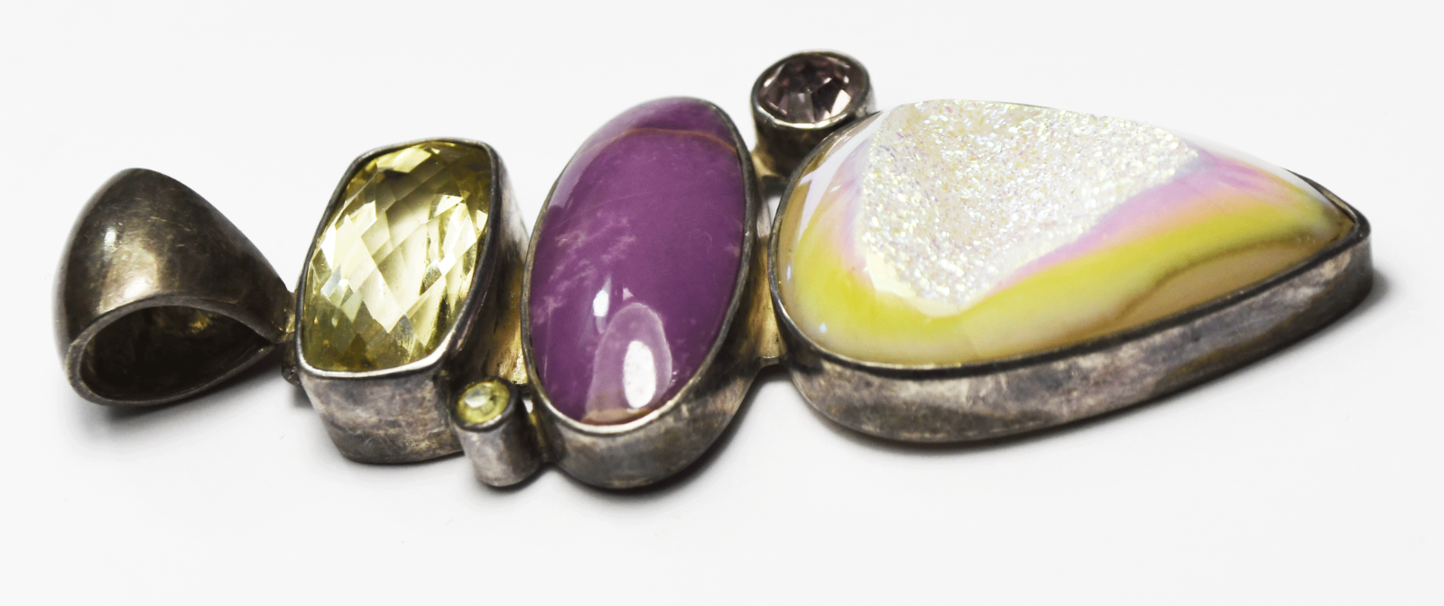 Sterling Silver Starborn Druzy Quartz Purple 3 Tier Pendant 3" x 30mm