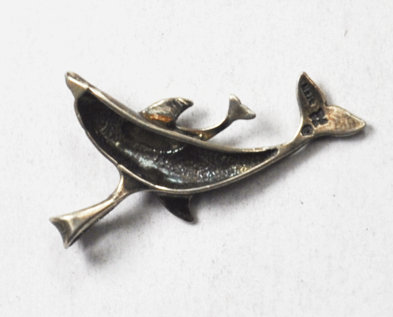 Sterling Silver Sunwest Mother & Baby Dolphin Pendant 34mm x 22mm