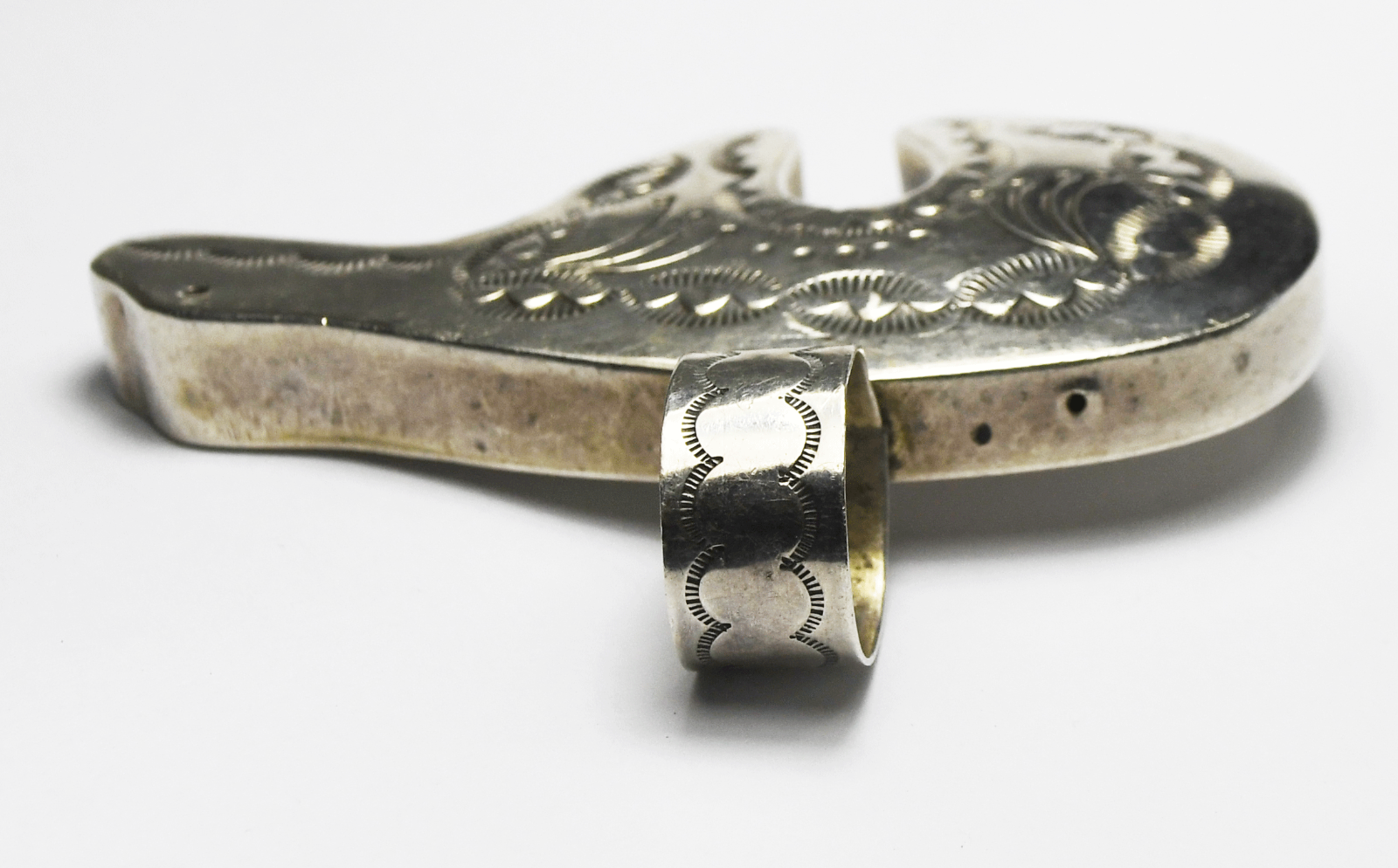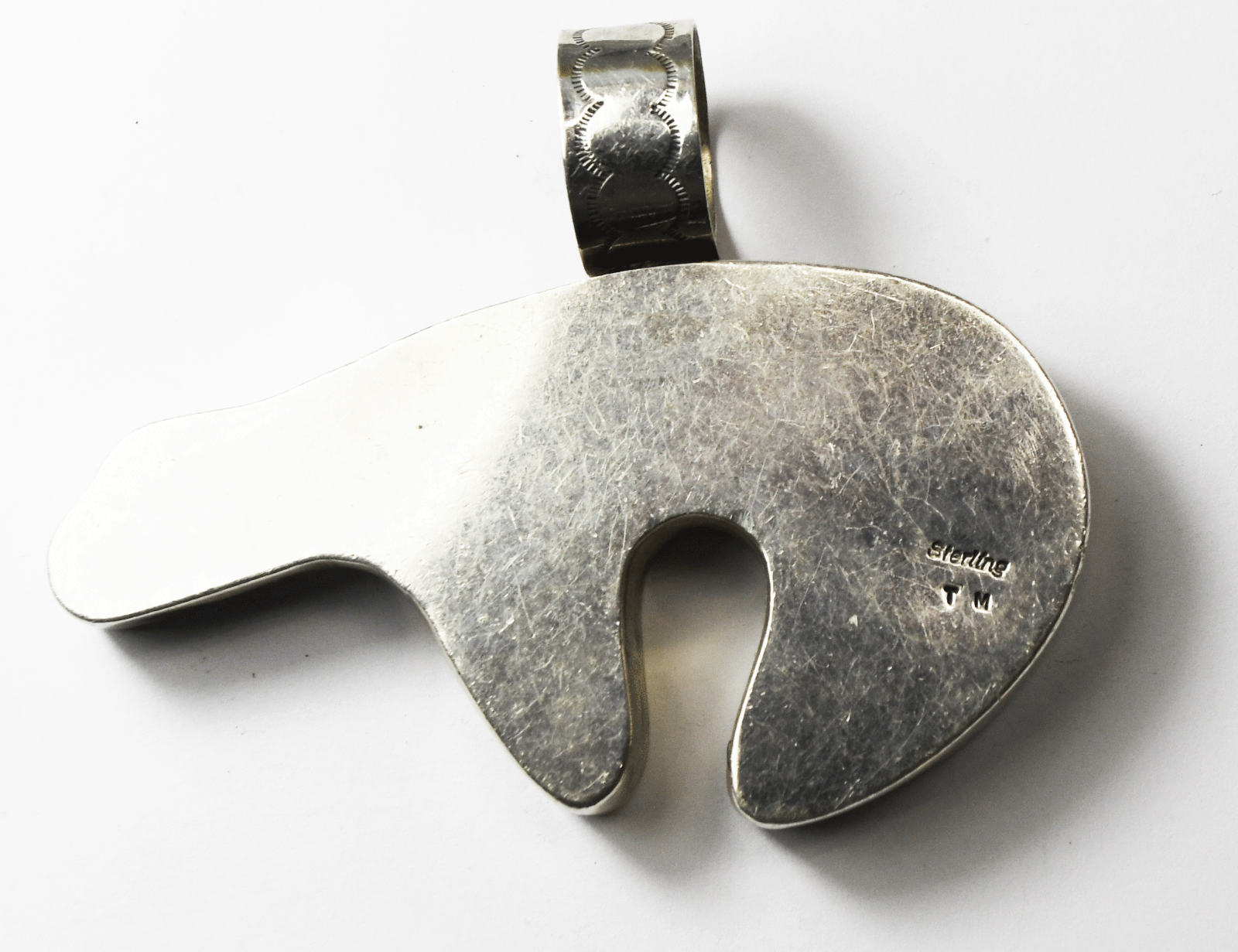 Sterling Silver T Morgan Etched Rays Bear Pendant 2-7/8" x 2-1/4"