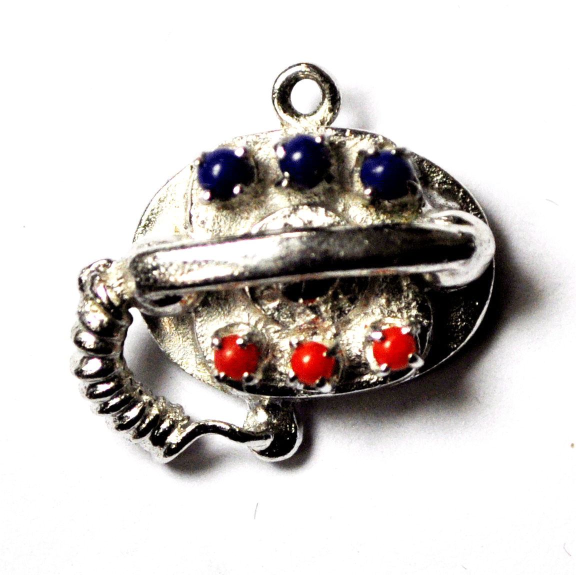 Sterling Silver Telephone Lapis Coral Oval Charm 20mm M&M