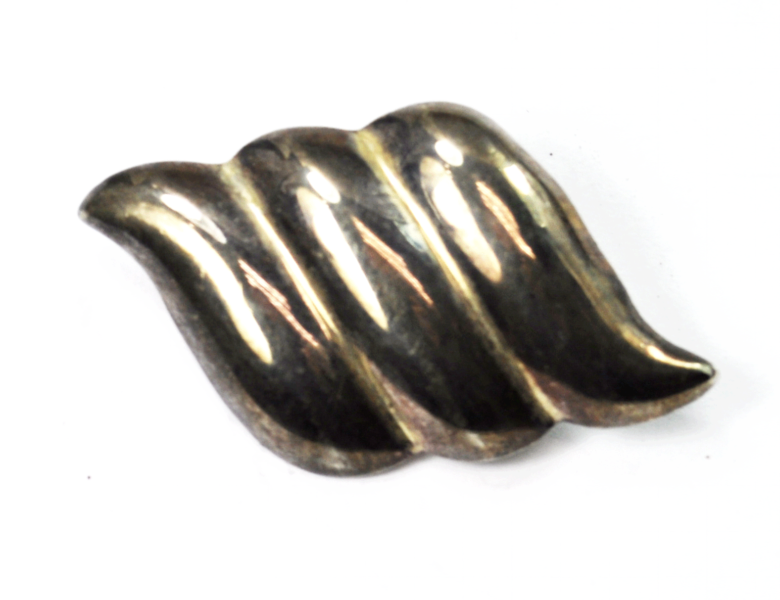 Sterling Silver Three Part Double Stripe Pointed Ellipse Brooch Pin 46mm x 28mm