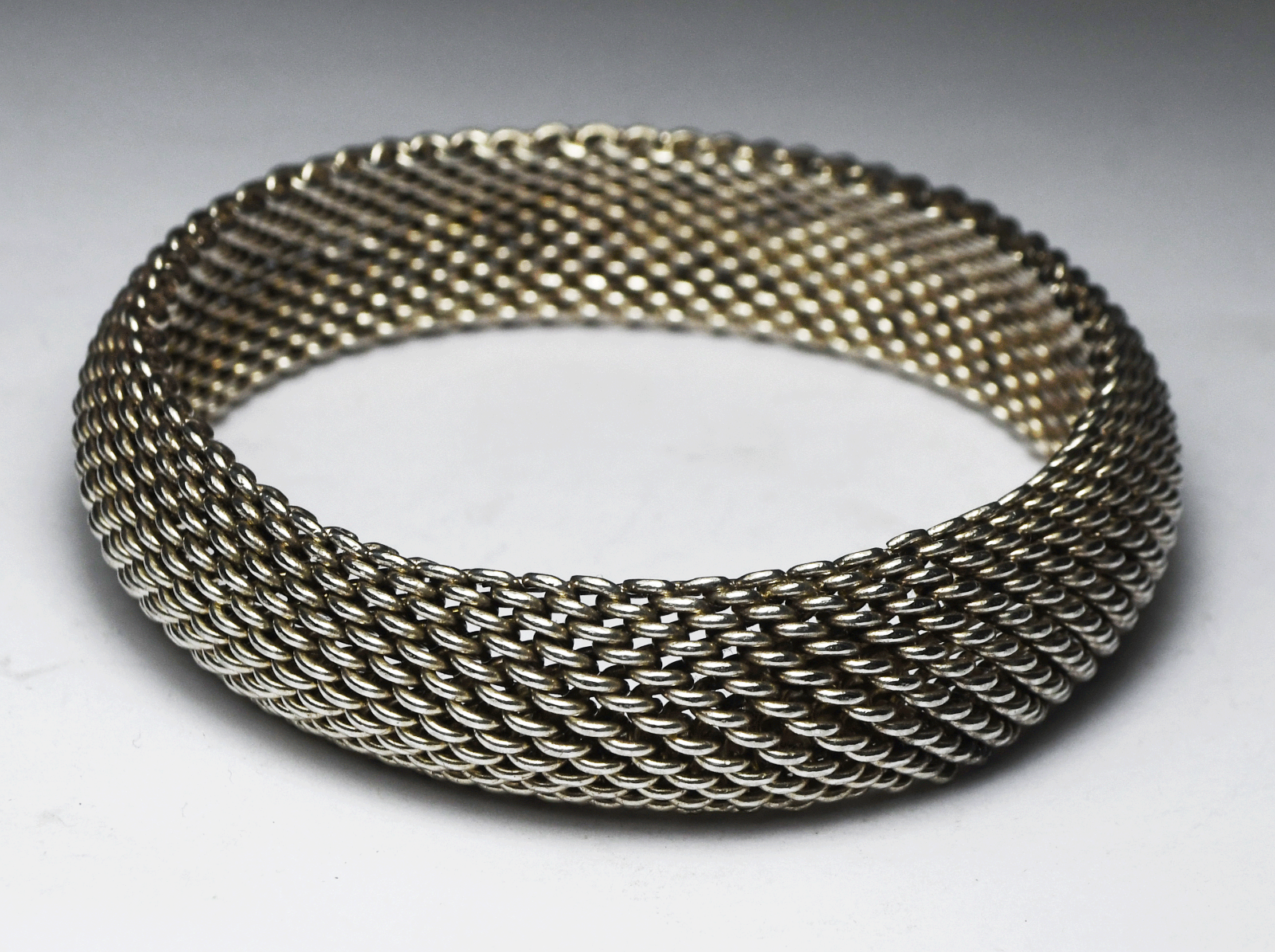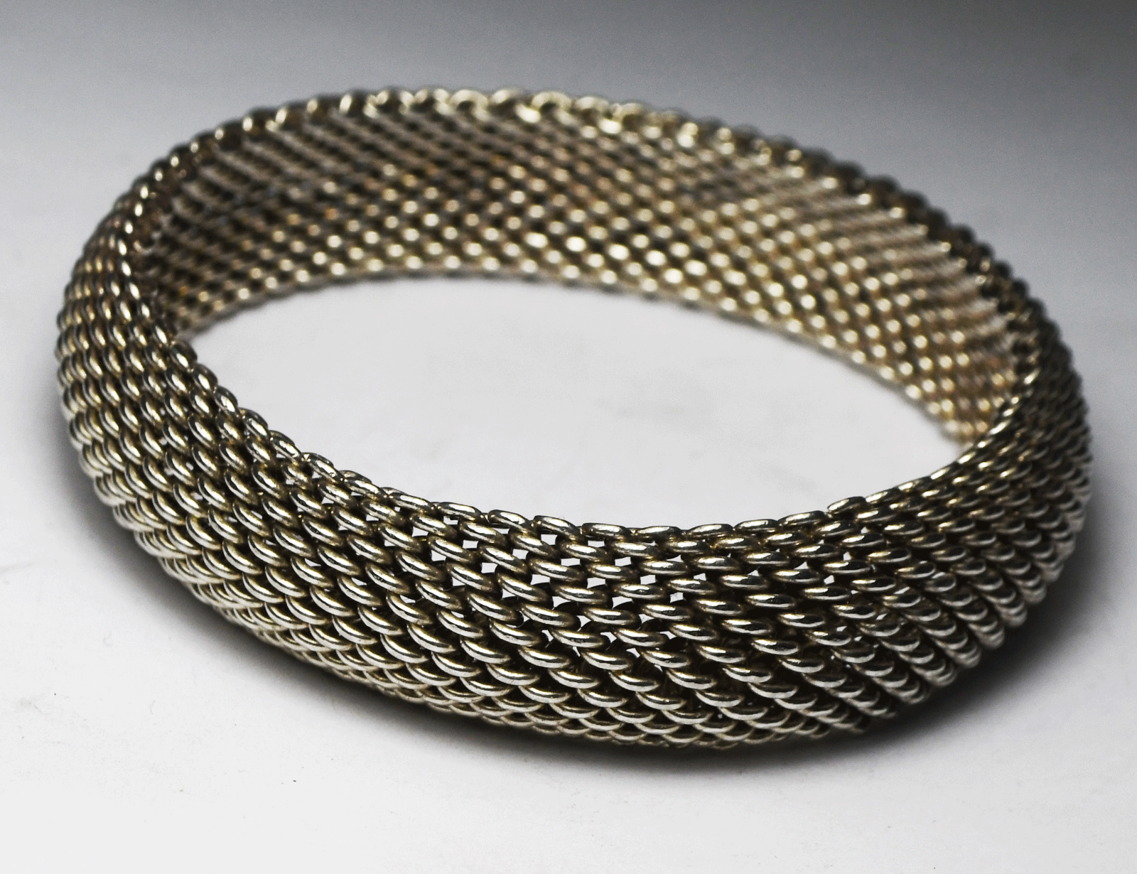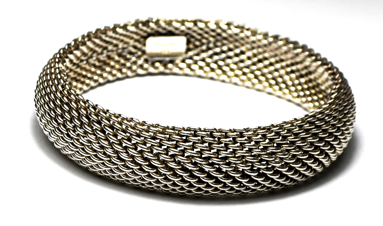 Sterling Silver Tiffany & Co Basket Weave Somerset Small 15mm Bangle Bracelet