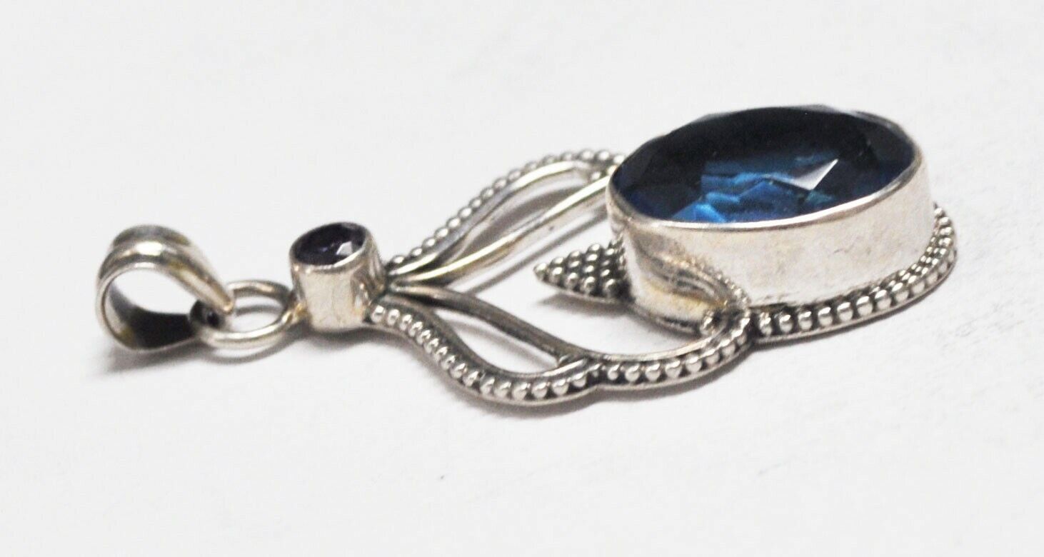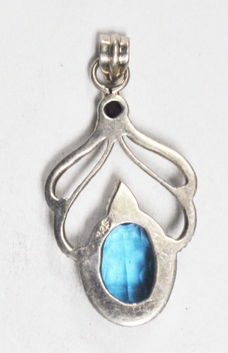 Sterling Silver Topaz Amethyst Wire Dot Halo Pendant 45x22mm