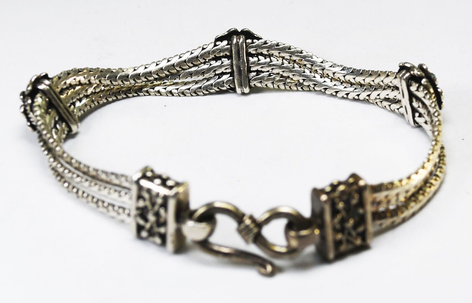 Sterling Silver Triple Franco Chain Flower Bracelet 11mm 7.5"
