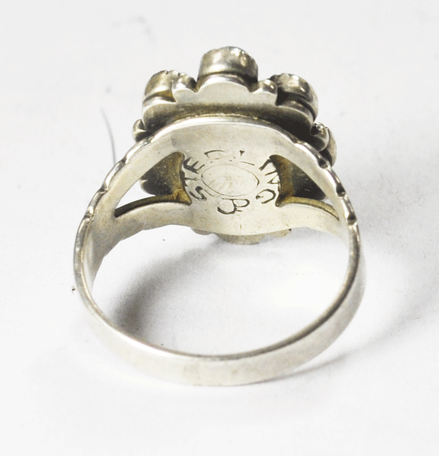 Sterling Silver Turquoise Halo Cluster Coral Ring Signed JP 16mm Size 4.5