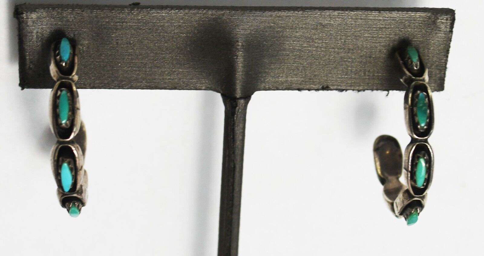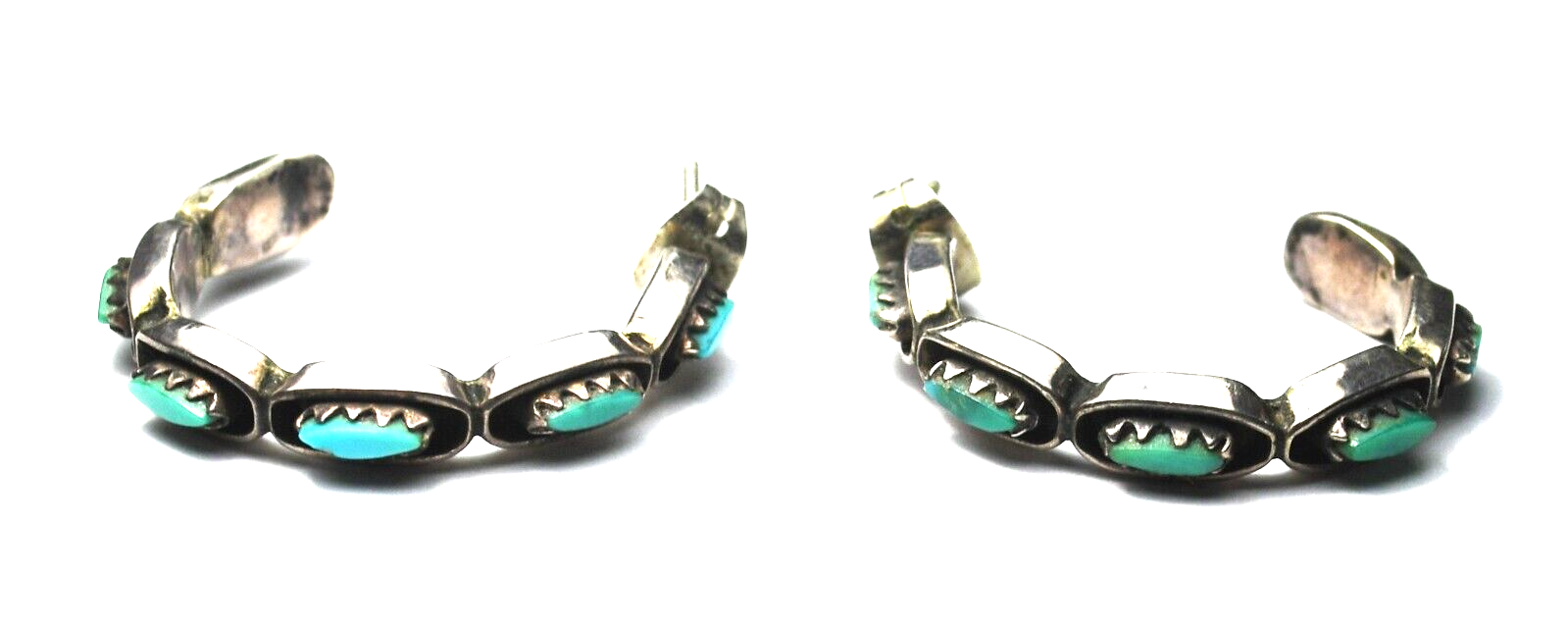 Sterling Silver Turquoise Petit Point Hoop Earrings 27mm x 5mm
