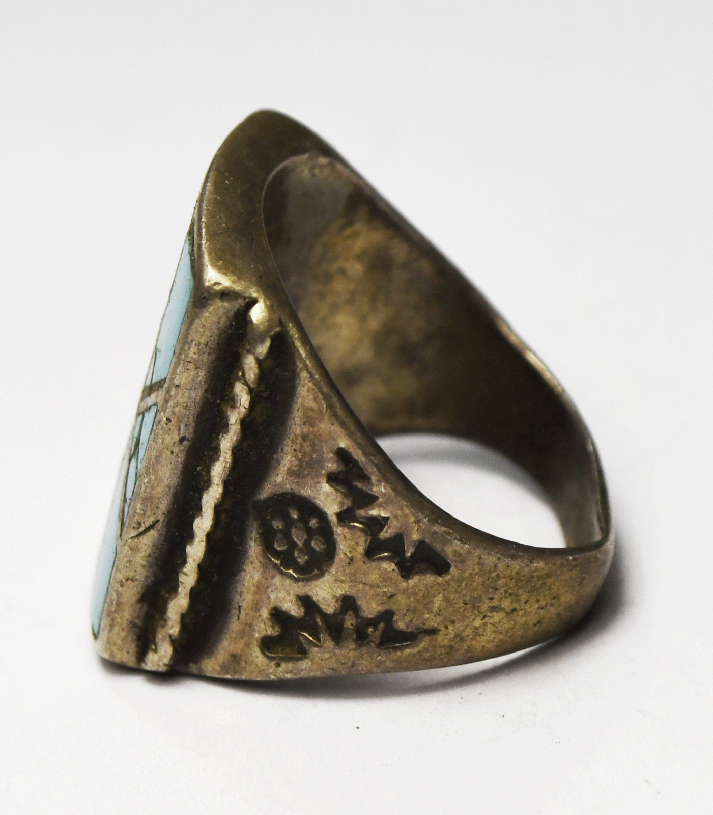 Sterling Silver Turquoise Rectangle Inlay Flower Sun Ring 24mm Size 10-1/4