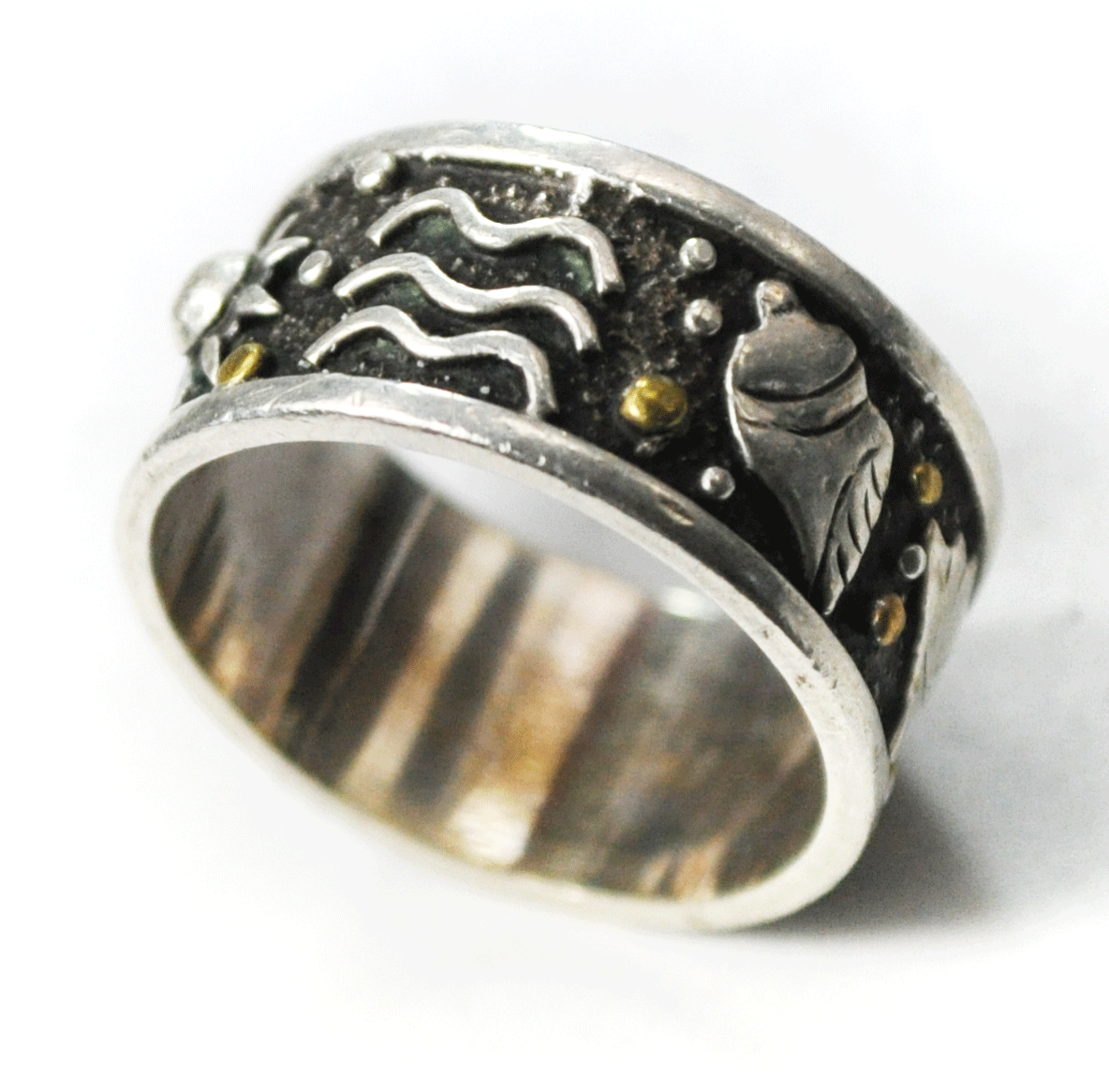 Sterling Silver Two Tone Story Teller Eternity Heart Sun Band 9mm Size 8