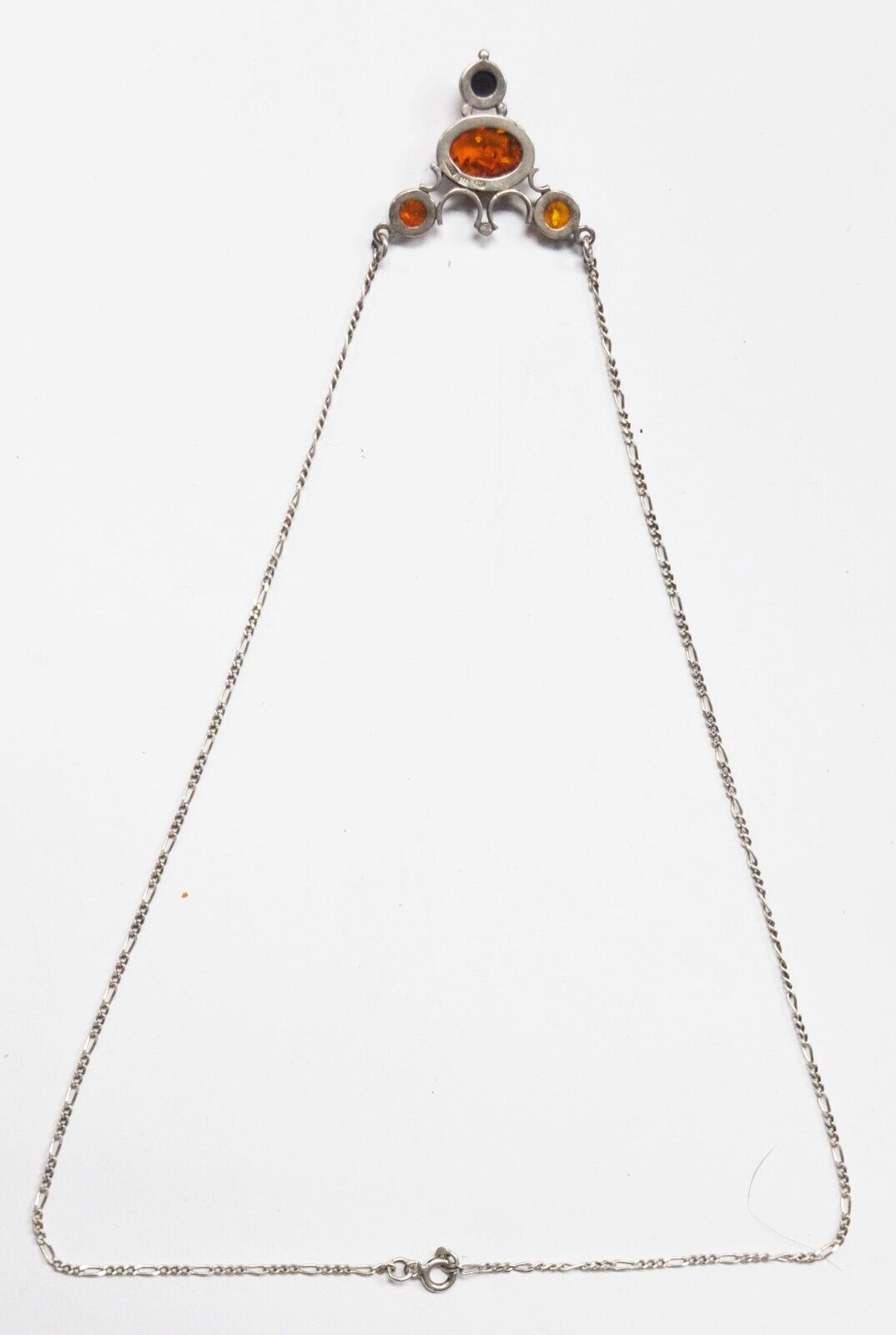 Sterling Silver VB Poland Amber 28mm Pendant 19" Necklace