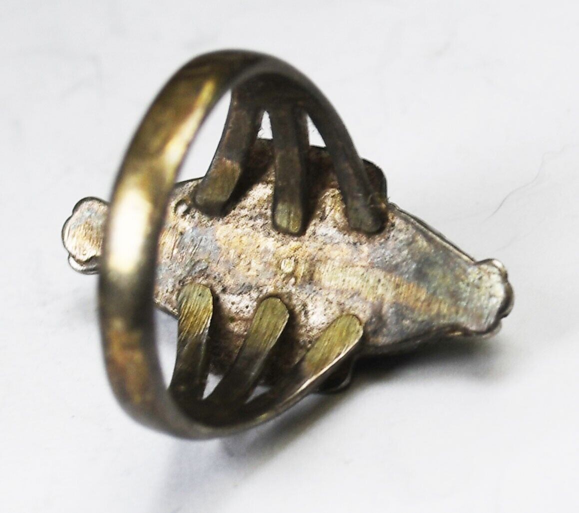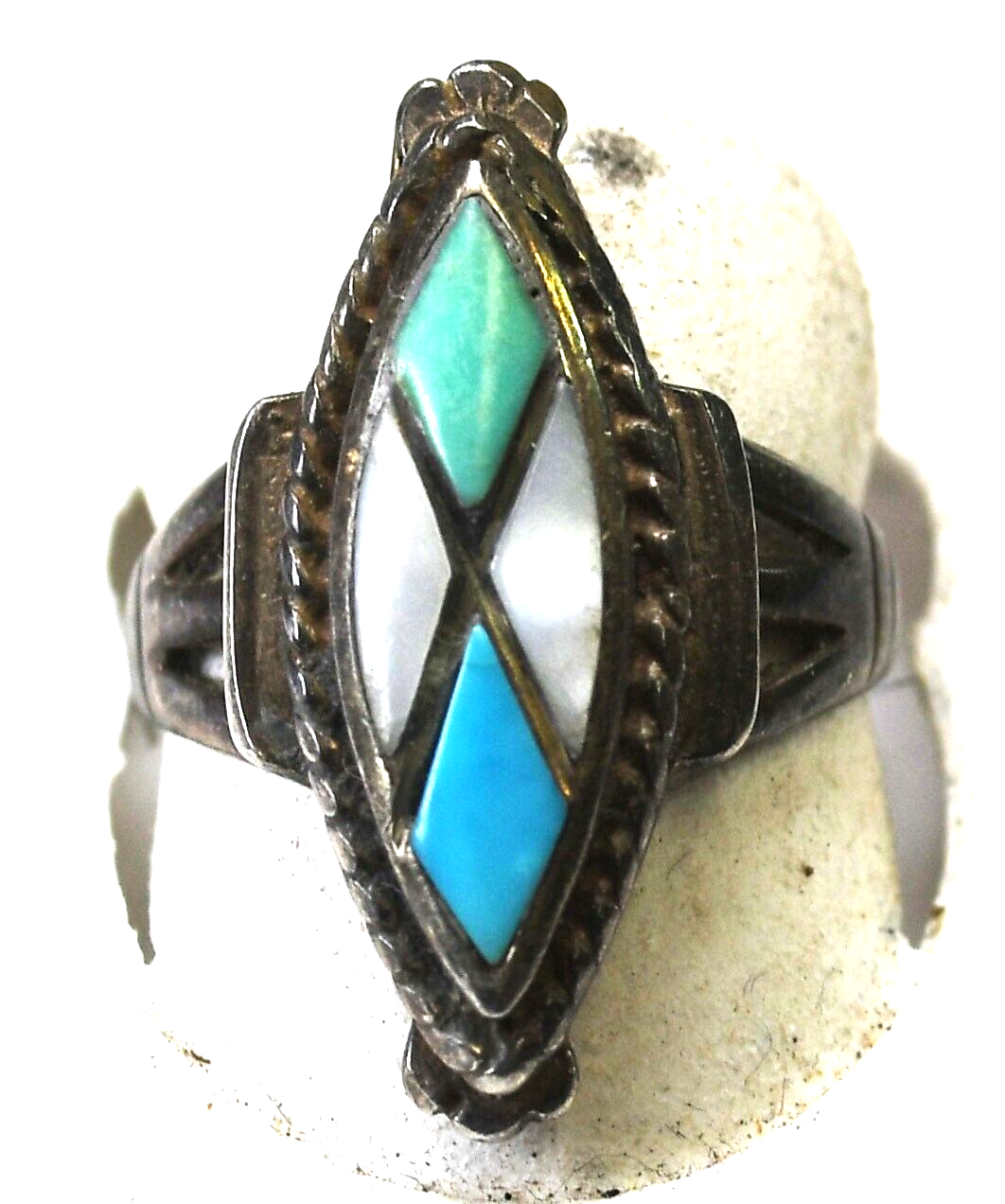 Sterling Silver Vintage MOP Turquoise Inlay Ring 25mm Size 6.5