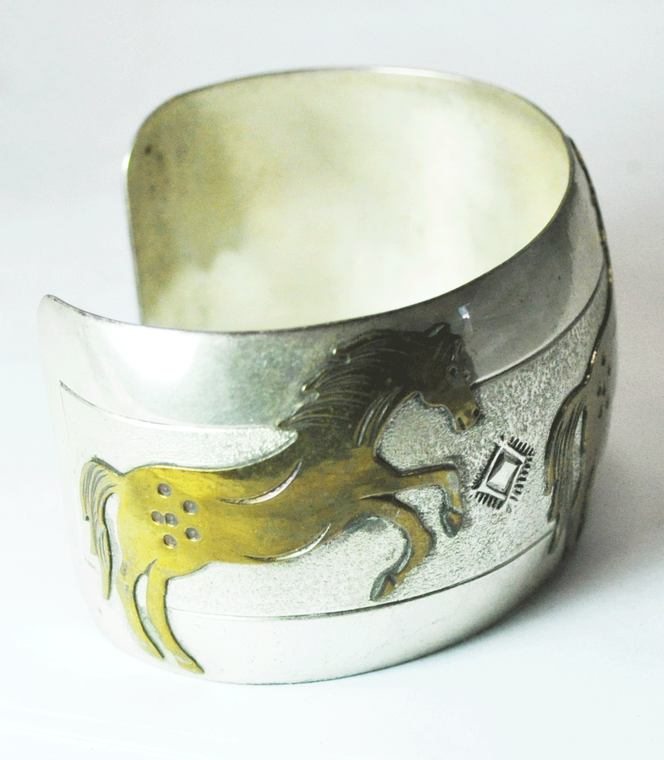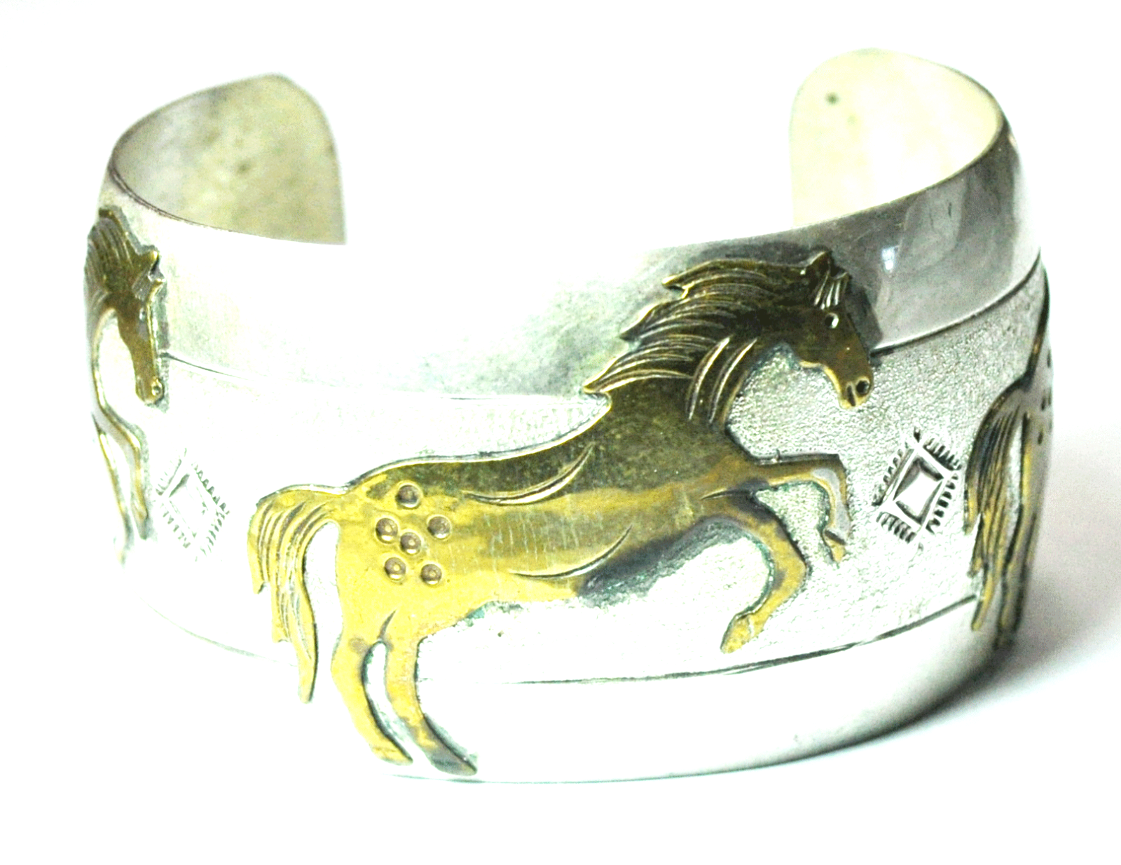 Sterling Silver Virgil Reeder 2 Tone Horse Cuff Bracelet 38mm 7" Wrist IHMSS