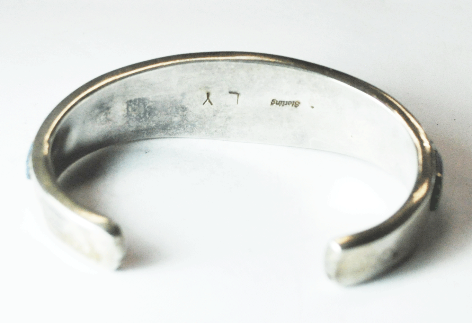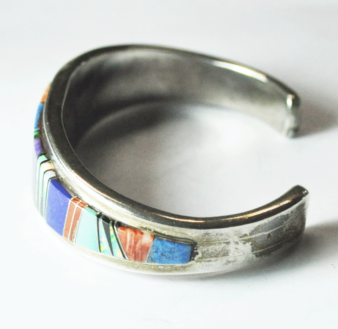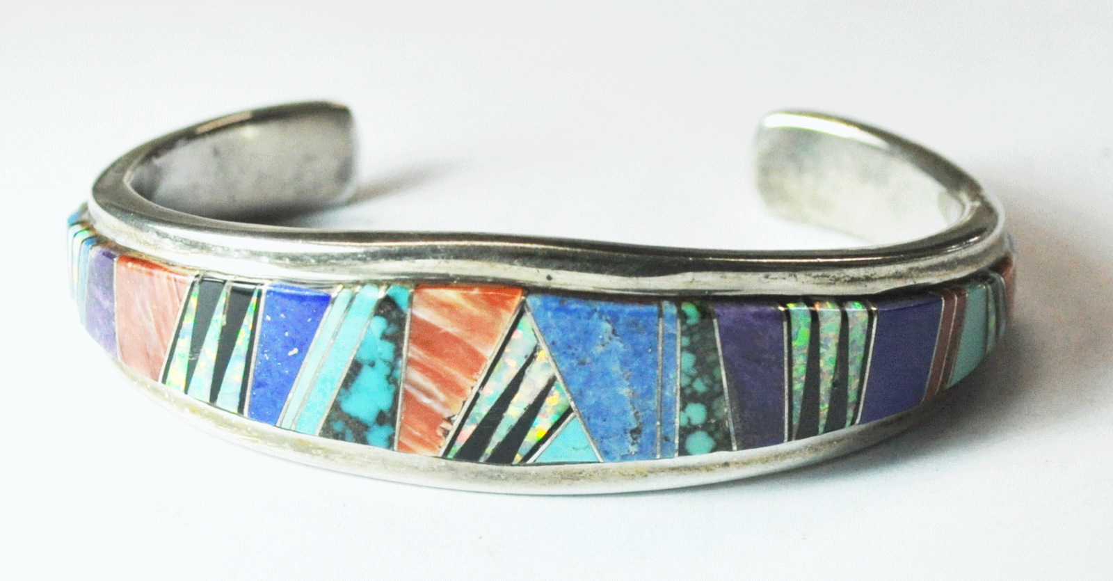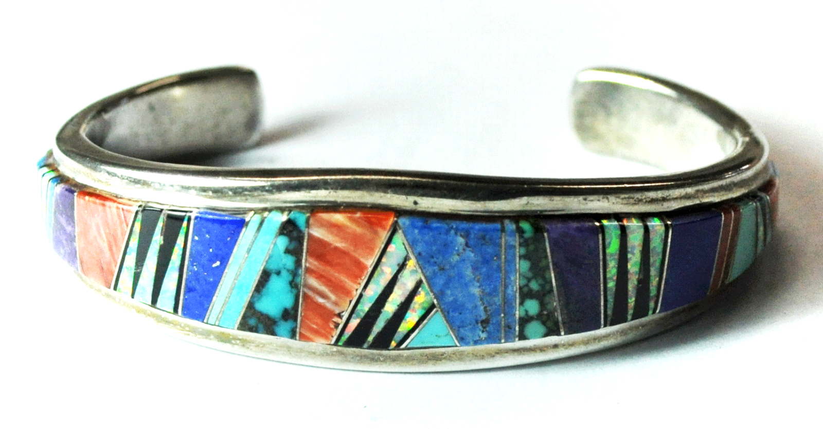 Sterling Silver YL Tiger Stripe Inlay Cuff Bracelet 19mm 7" Wrist Spiny Oyster