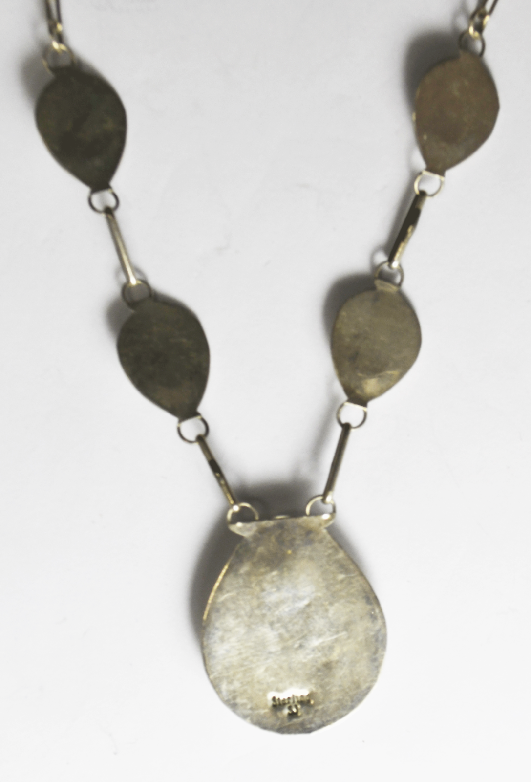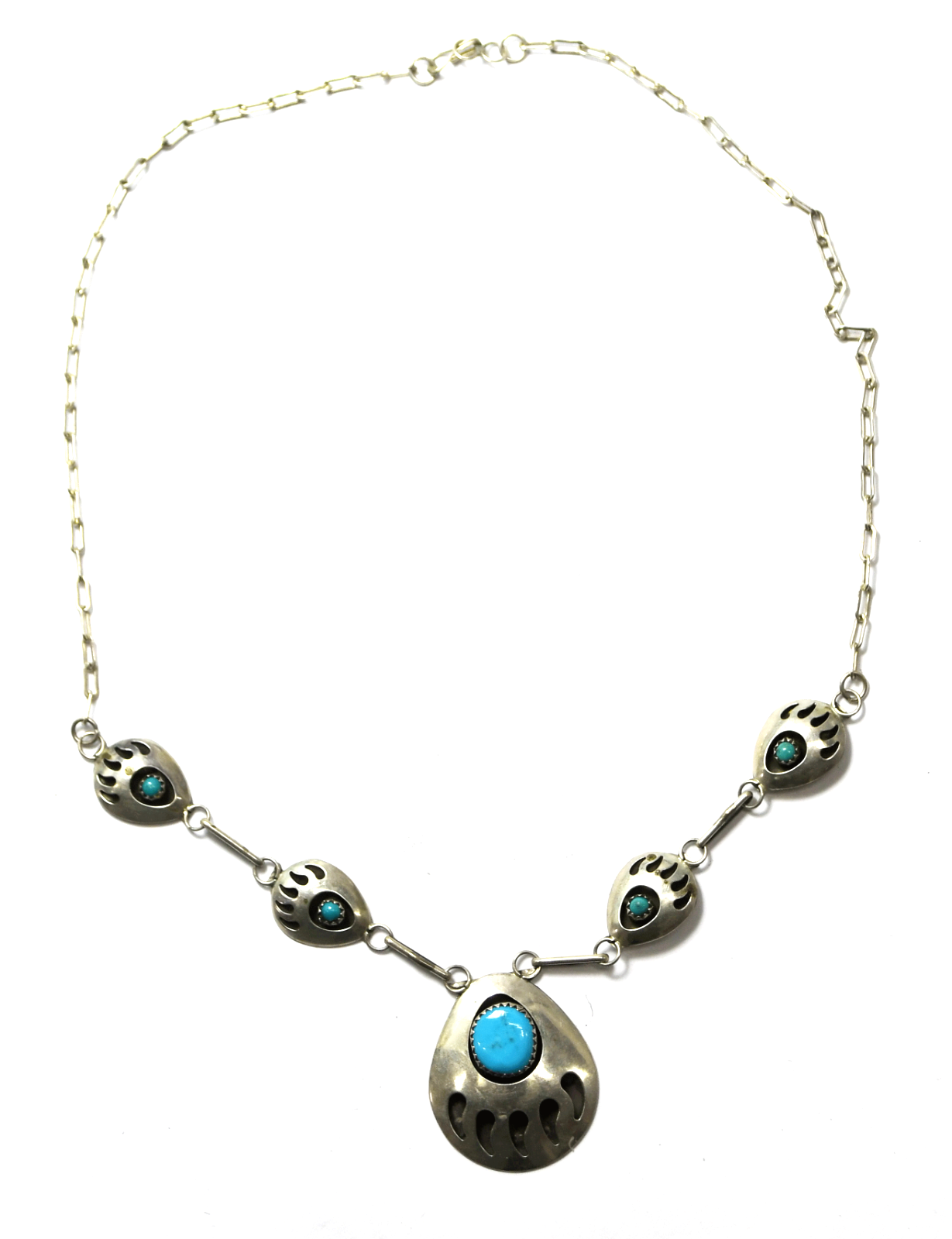 Sterling SJ Turquoise Bear Claw Shadow Box 32mm Necklace 19"