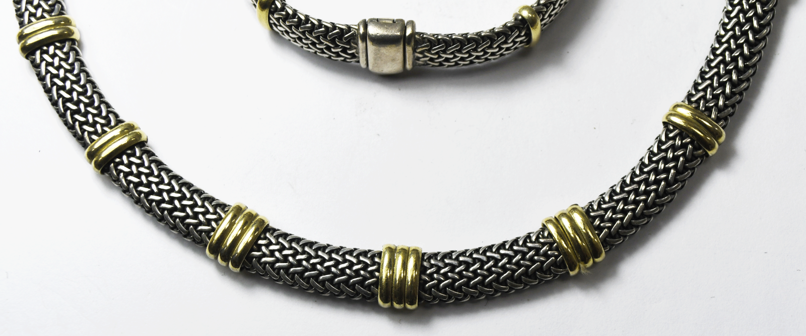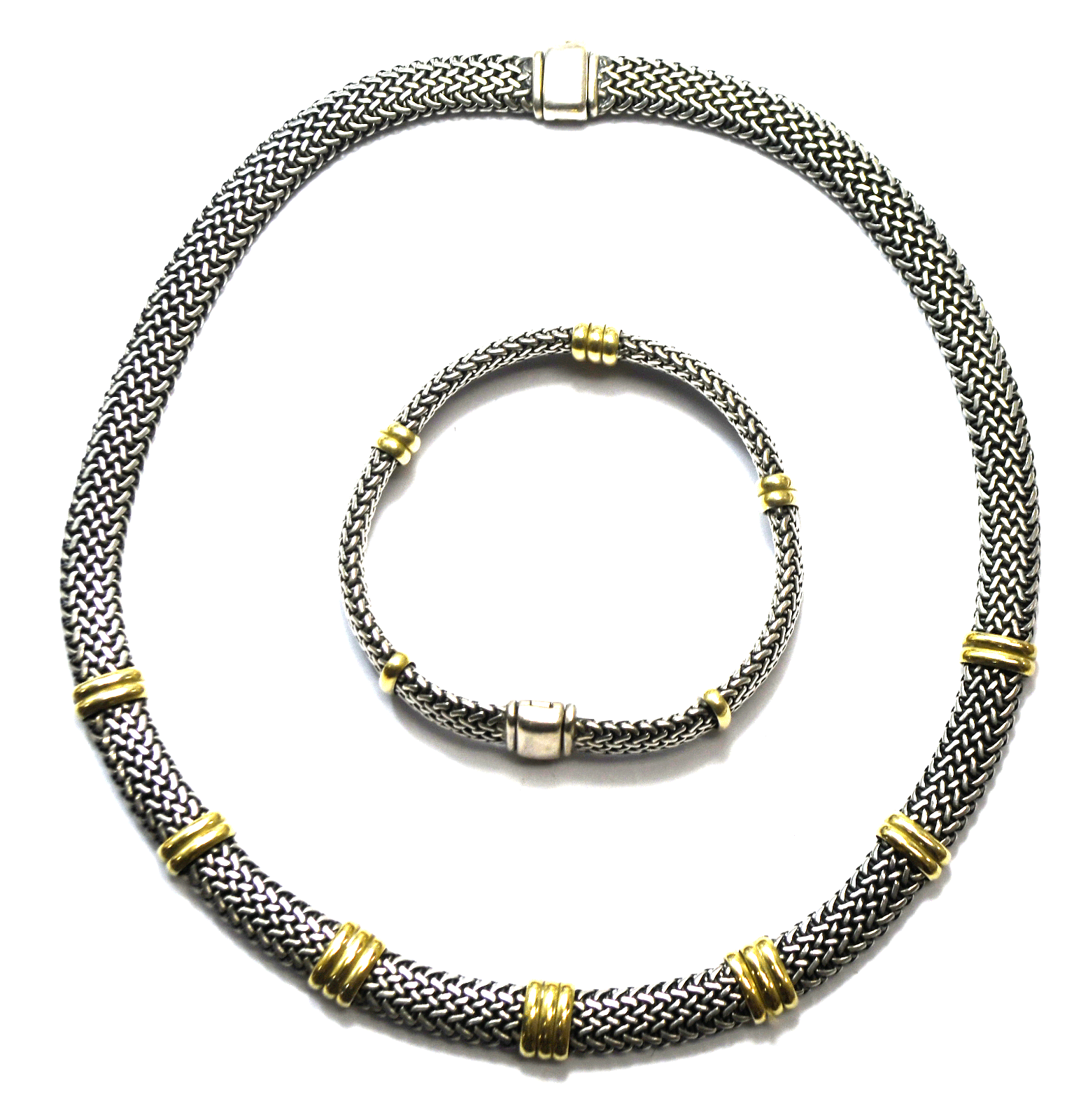Sterling Slave & 18k 9mm Mesh Chain 17" Necklace & 8" Bracelet Set 112g