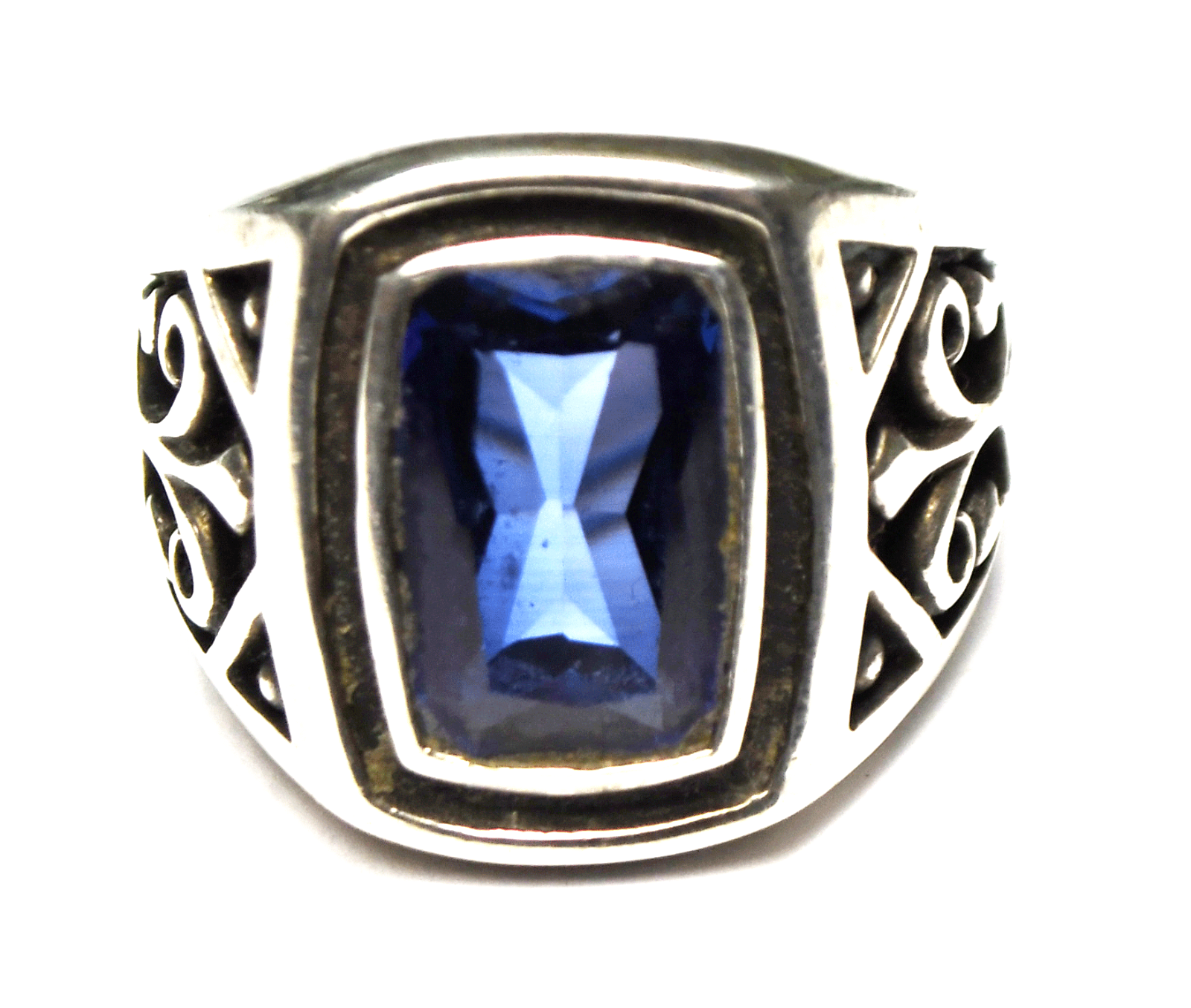 Sterling Stauer Blue Fire Helenite St Helens Obsidian Filigree Ring 20mm Size 9