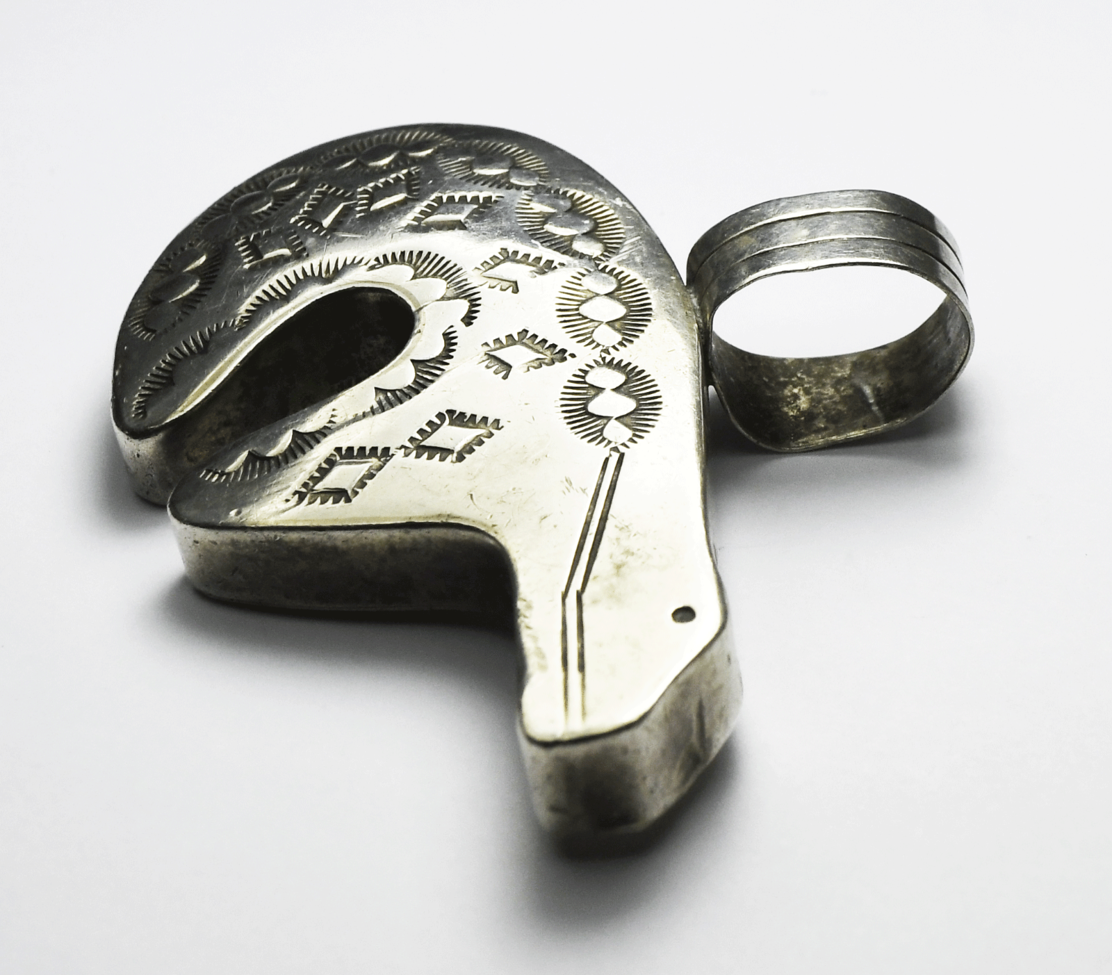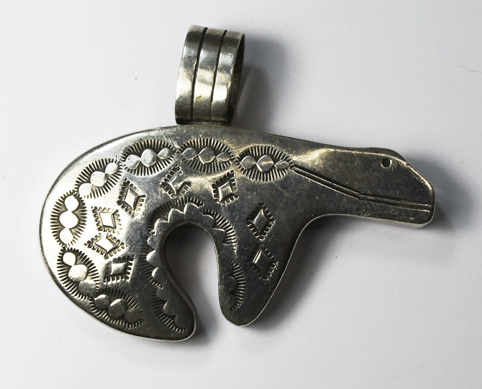 Sterling T Morgan Etched Rays Bear Pendant 2-7/8" x 2-1/4" Oval Stripe Bale