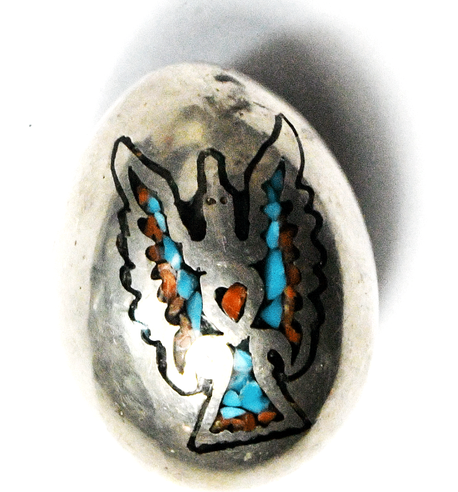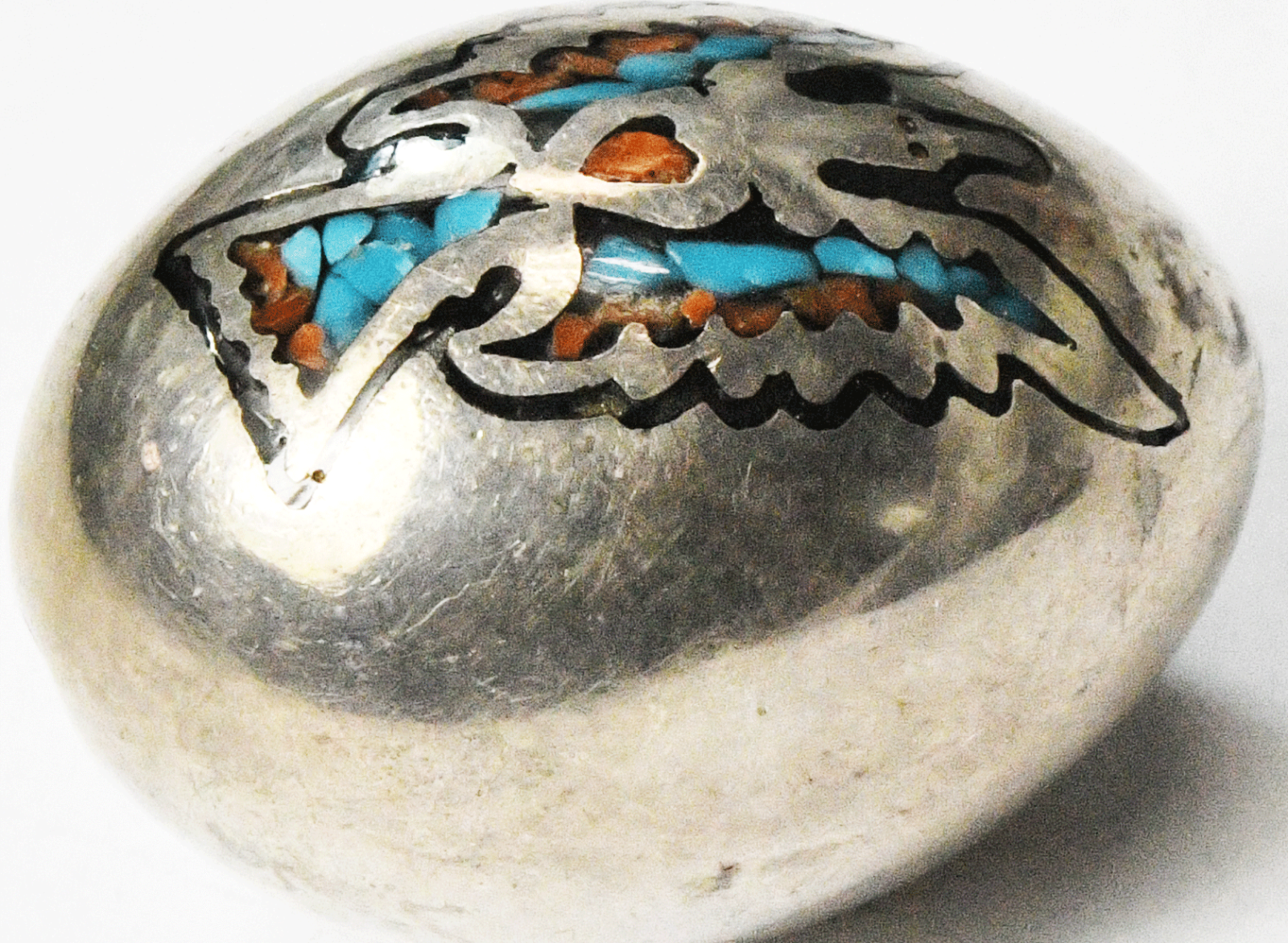 Sterling Turquoise Coral Chip Inlay Thunderbird Egg Slider Pendant 37x27mm